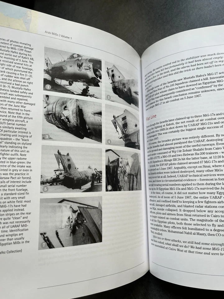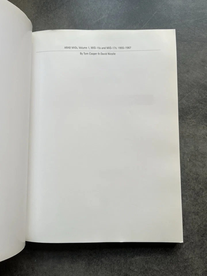 This example is in good condition all round with some minor wear to the front edges but no missing pages or tears. There is no water damage. This is a great example all round. Please see photos for condition.Starting in 1955, and for the following 20 years, MiG-15 and MiG-17 formed the backbone of several Arab air forces. They played a prominent role in four major wars and dozens of minor incidents. Covering the first decade of this period, this study - Arab MiGs, Volume 1, the first in a series of publications - provides a unique and previously unavailable insight into the service history of both types with five Arab air forces. Even more so, it tells the story of people that flew MiG-15s and MiG-17s in Algeria, Egypt, Iraq and Syria. Several of whom became dominant political figures in most recent history of these countries. The reason why Arab countries began purchasing MiGs and thus became embroiled in the Cold War is approached and discussed from an entirely new and original - Arab - point of view. Details about combat operations during three major wars between Arabs and Israel, as well as the war in Yemen of the 1960s, are reconstructed on basis of primary evidence, foremost in form of original documents and participants' recollections. Aircraft colors, unit insignia, serial- and construction numbers are described in an unprecedented detail. Over 200 photos, color artworks, maps and tables illustrate the story of aircraft and their crews, but also many air combats that became highly influential for the future of aerial warfare and fates of several nations.