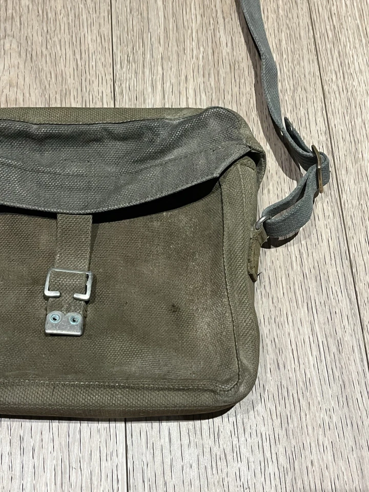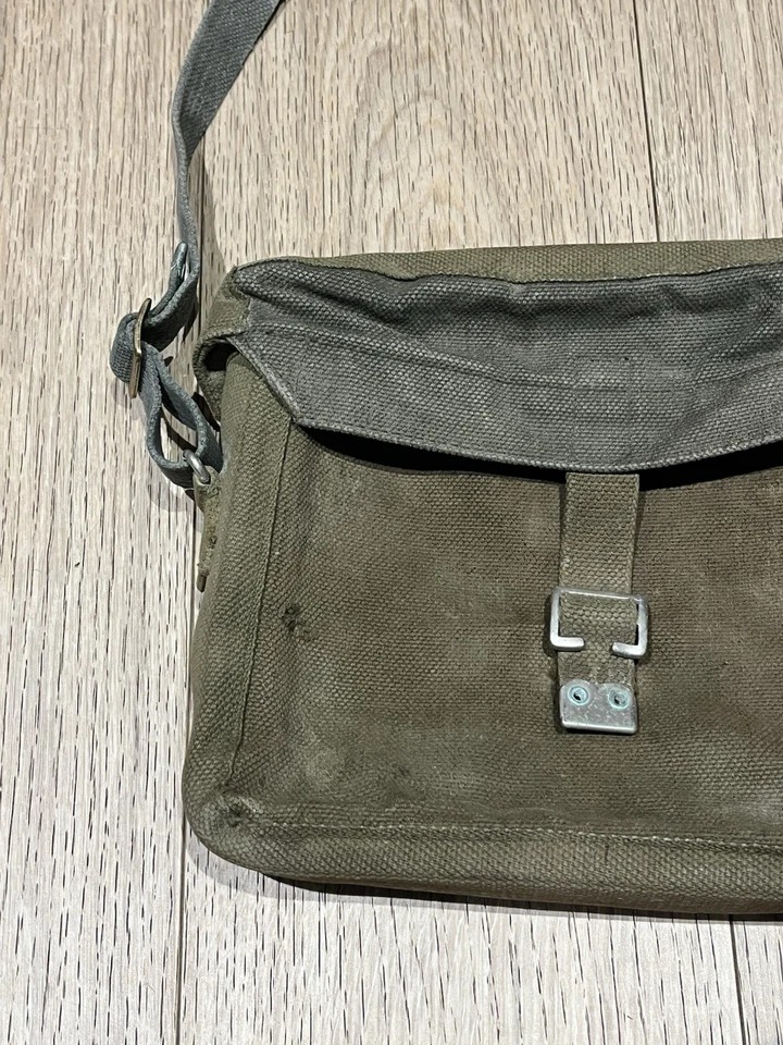 This is an original British Army 1972 Dated Radio Pouch With Its Shoulder Strap By MECO. This example is used condition with minor wear and stains inside the bag as shown. This example is a northern island/ Falklands war era example made by MECO. This example comes with its original 1970s shoulder strap. Please see photos for condition.