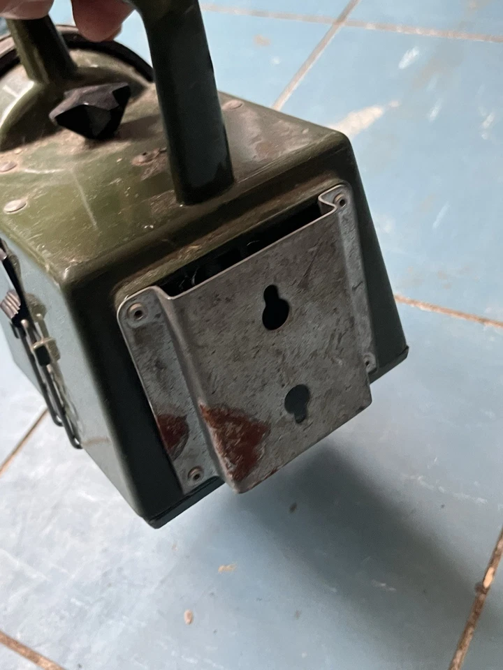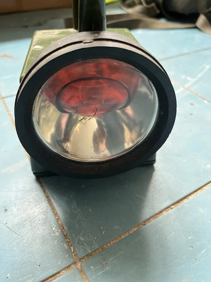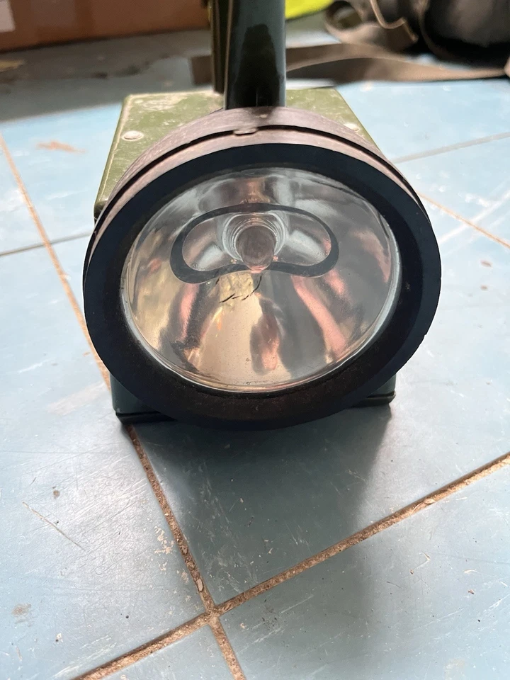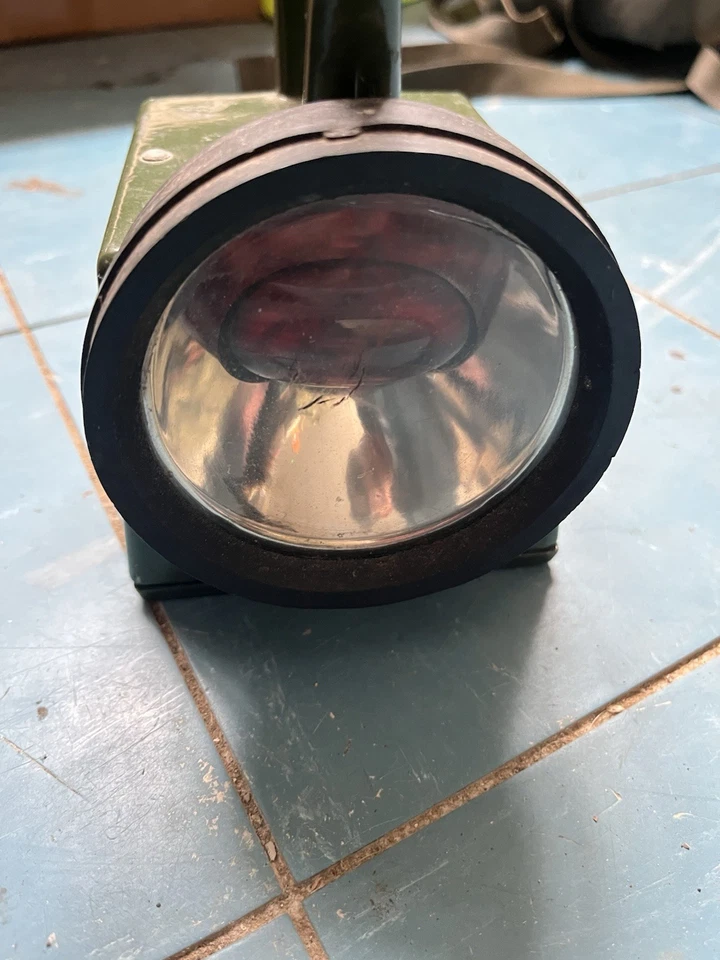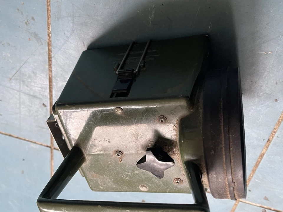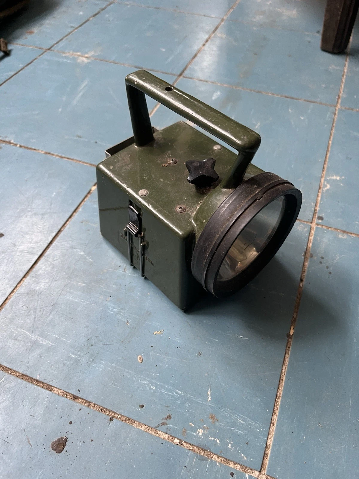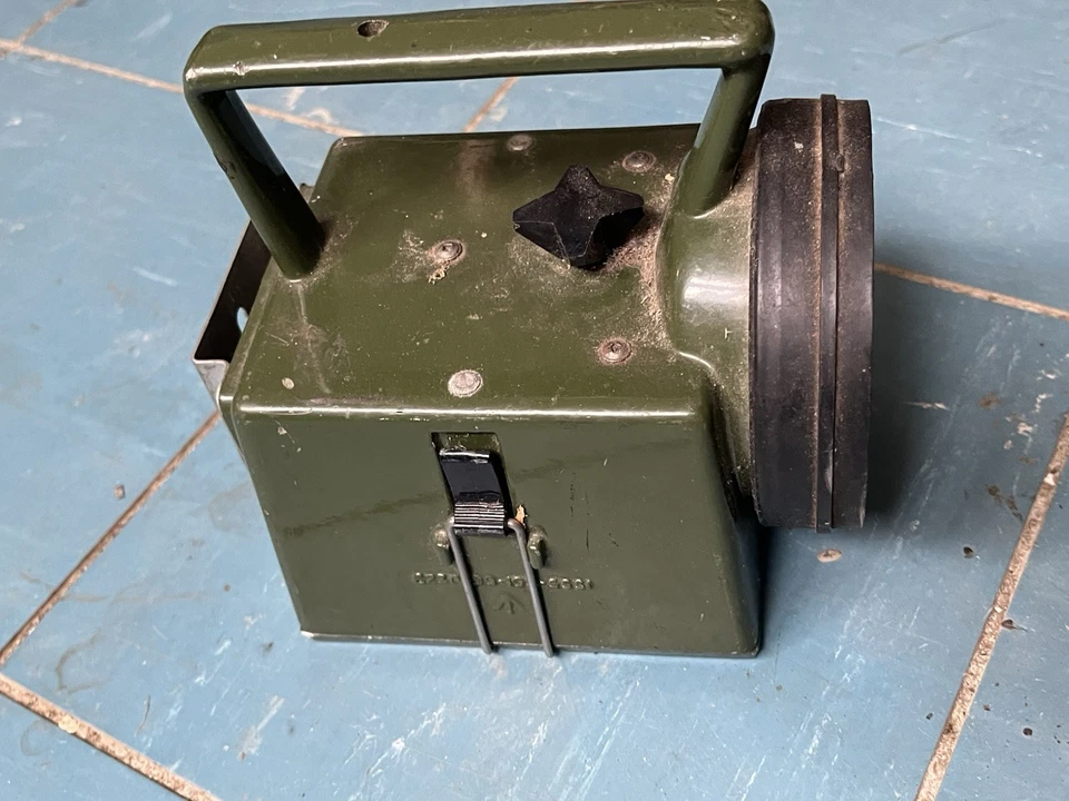 These were issued from the 1950s to 70s lamp used by various military units including the RMP. basically the same as the British Railways version but army green with WD arrow mark. sold as collectable , no battery. This example is in good condition all round with the multiple lens covers which it can switch through. It has had a conversion at some point to more batteries but we do not know if this works nor if the batteries have any charge in them so is sold as seen. Please see photos for condition.