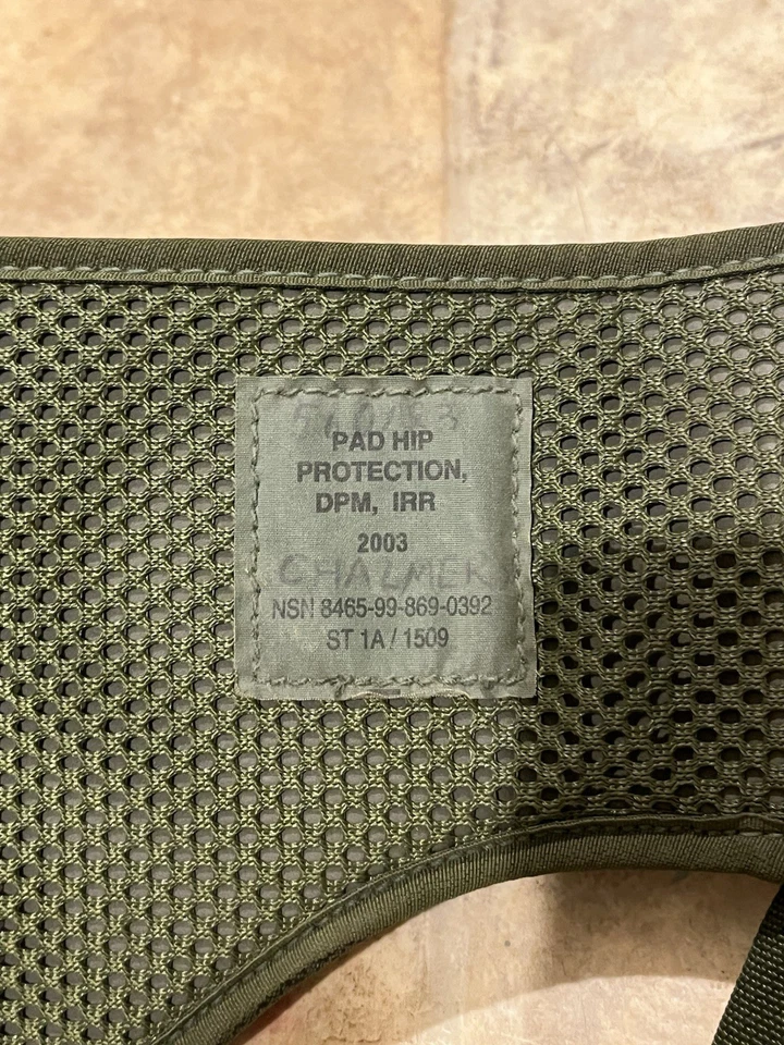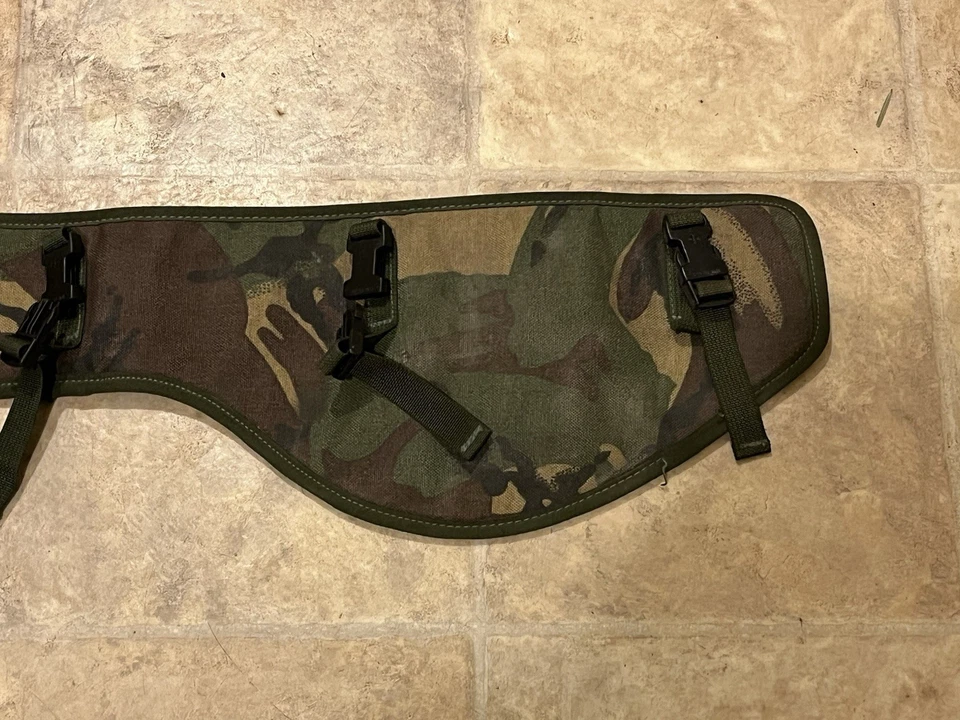The genuine issue hip protector pad is worn on the inside of the webbing belt, providing additional padding to the hip area. Made with nylon mesh to prevent chafing and promote ventilation, and crafted with tough IRR treated DPM cordura nylon, this belt is both durable and practical. With 5 adjustable straps and 20mm fastex buckles, the pad can be easily added or removed as needed. This example is in very good condition all round and is dated 2003. Please see photos for condition.