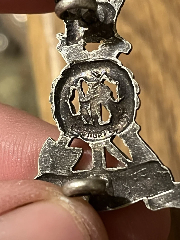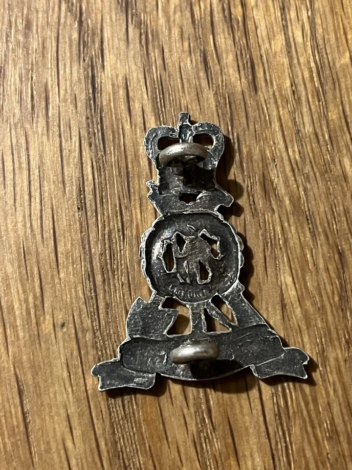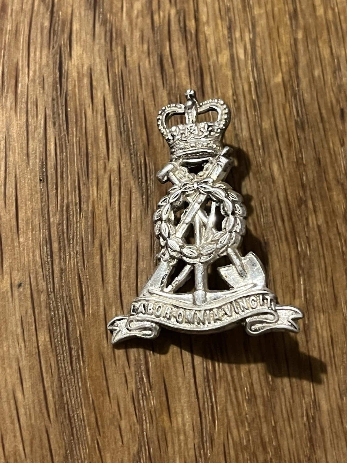 This is an original British Army Royal Pioneer Corps (1952-1985) Officers Silver-plated Cap Badge. This example is in good condition all round with some minor wear to the finish as shown. It has both its rear loops which are not bent or damaged. This example was made by J R Gaunt London. Please see photos for condition.