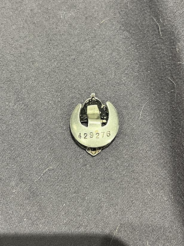 The Territorial Army – King’s Crown Silver Button Hole Badge. With the number 429276 on the rear. This example is in good condition with only minimal wear. This was worn by members of the British Military who were serving with the Territorial Army or as it is now called the reserves. Each number was specific to each member with no badge havig the same number on the rear.The front of the badge is made from silver but the rear is made from a base metal.