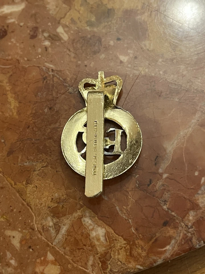This is a genuine Duke of York's Royal Military School Dover Staybright Anodised Cap Badge Q/C. This example is in very good condition all round with little to no wear. It has the makers name on the rear which reads “Dowler Birmingham”. This example has no damage to the rear slide. Please see photos for condition.