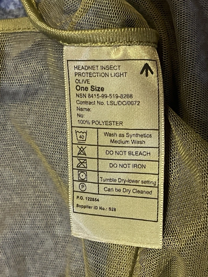 Genuine British Army issue Insect Protective Headnet (Insect Net, Protective, Light Olive) designed to protect against flying insects in both the UK and overseas. Features include lightweight mesh construction with elasticated cord adjustment with lockcord fitting. Supplied in new condition removed from packaging. One size fits all. Weight: 43g. Colour: light olive.