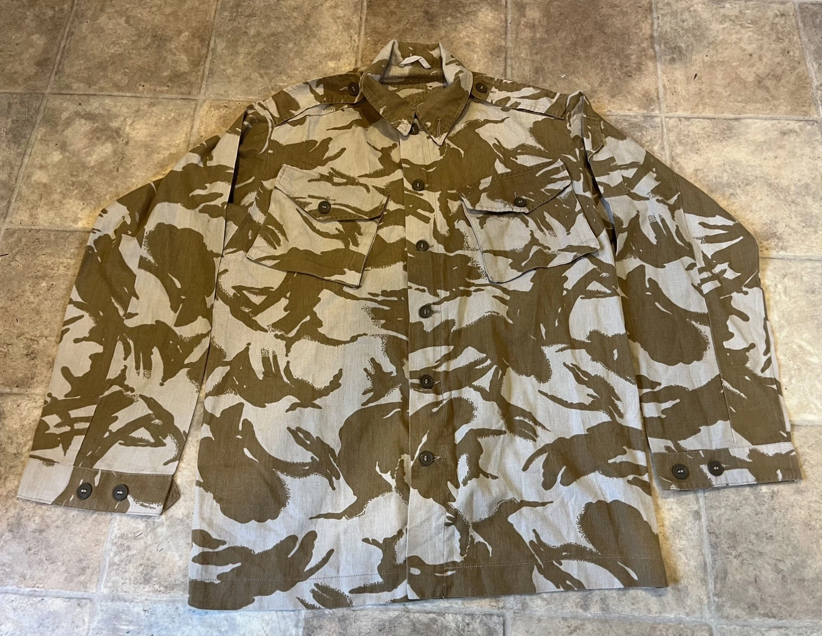 This is a GENUINE old type RARE GULF WAR 1 DESERT DPM Shirt 190/112 44-46” Chest XXL. This example is in very good condition all round with minor wear. There is no damage or holes or stains in this item. It still has a bright tan colour and has not faded or been washed out.