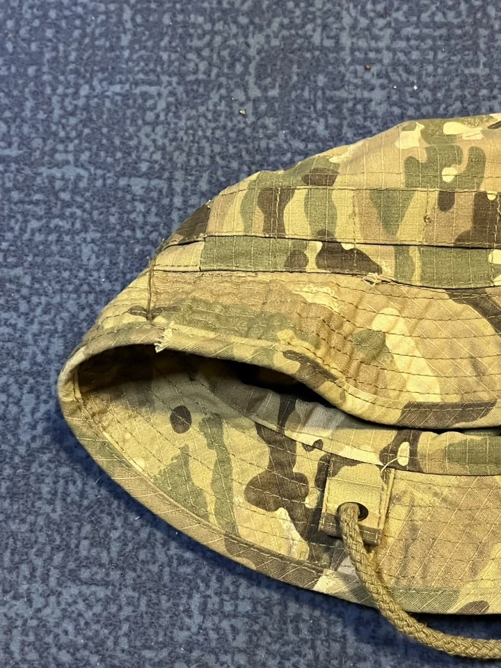 This is a private purchase MTP/Multicam Camo Bush Hat British Army Style Boonie Jungle Sun Hat Size 56cm. This example is in used condition with minor wear. It has no holes and looks to be almost new. It was made by disciple tactical. Please see photos for condition.