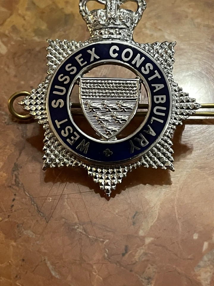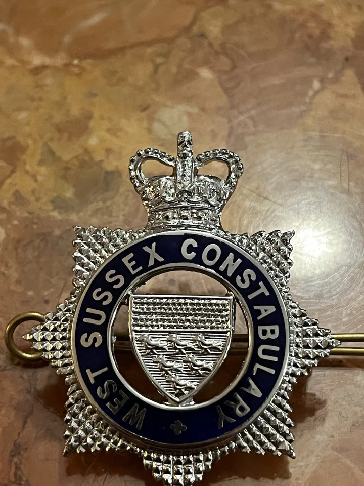 This is a genuine Obsolete British Police West Sussex Constabulary - Senior Officers Cap Badge 1952-1968. This example is in good condition all round with no damage or wear. It has both its rear lugs and its original brass pin. Please see photos for condition.