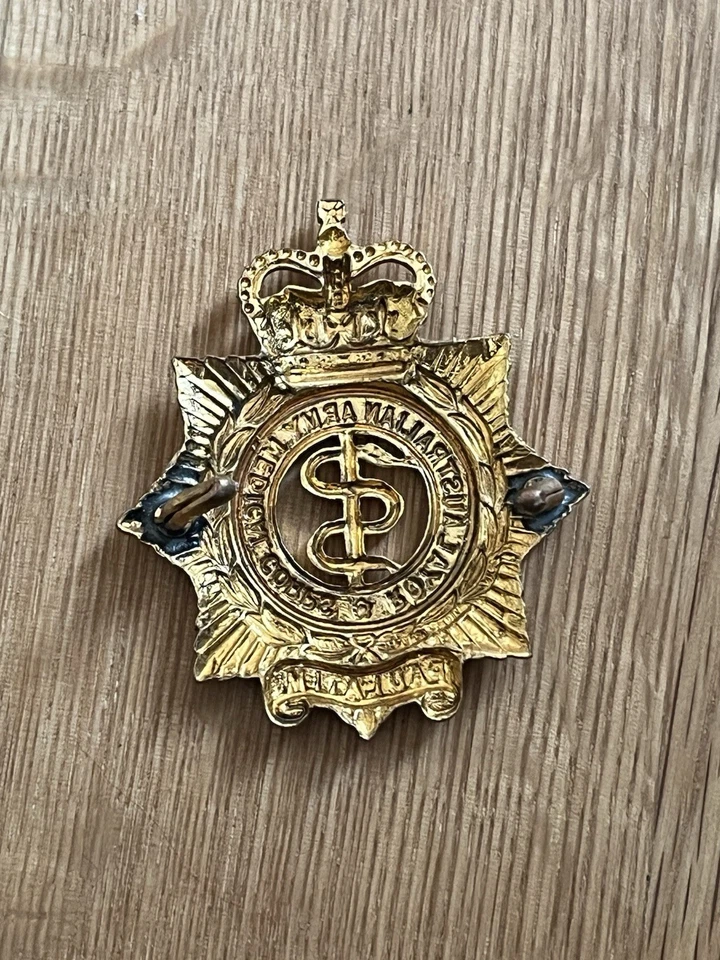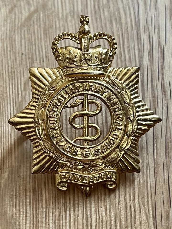 This is an Original Brass Queens Crown Royal Australian Army Medical Corps Cap Badge. This example is in good condition all round with minor wear. It has both rear lugs which have been closed shut. These can easily be opened up and made to be used again we just haven’t had a chance. These are unusual to find especially in the UK and not Australia for obvious reasons. Please see photos for condition.