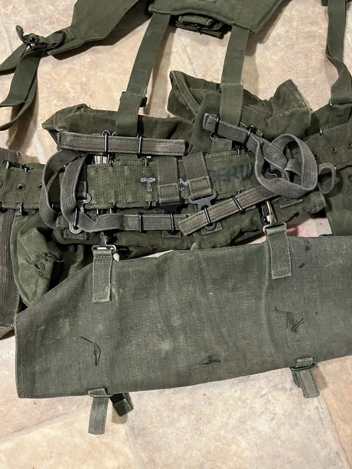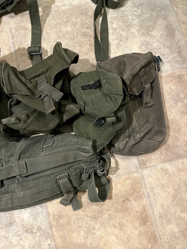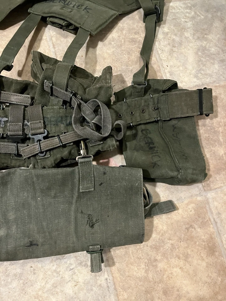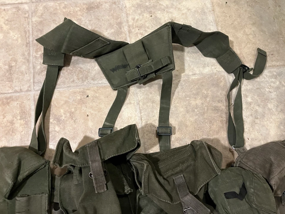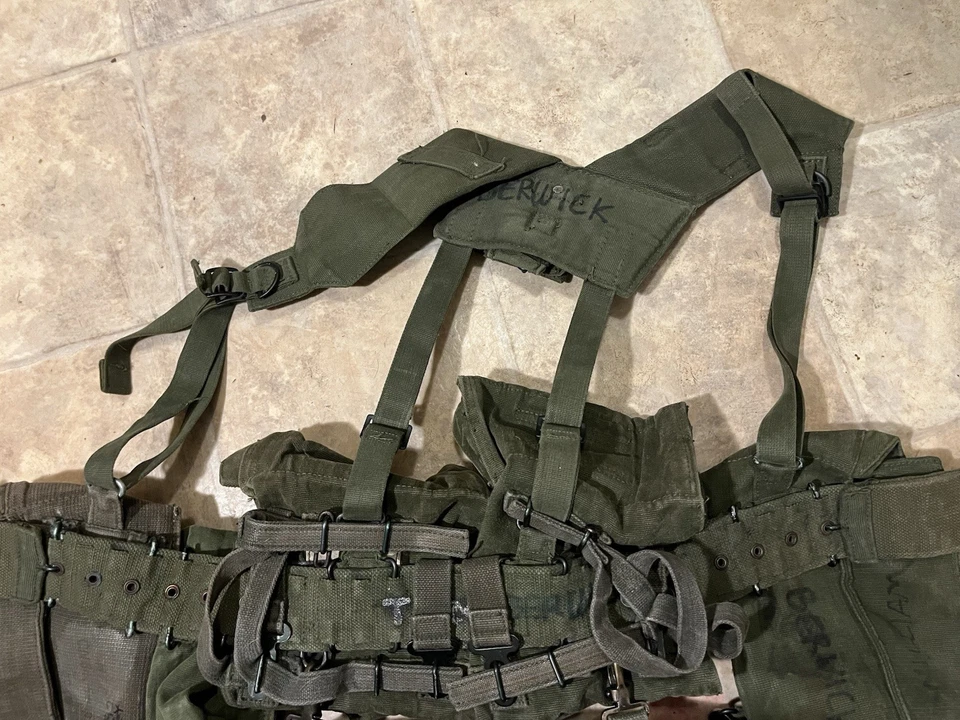 This is an Original British Army Issue 58 Pattern Complete Webbing Set Falklands War Era. This set is in very good condition all round with only minor wear. There are no major bits of damage. It has all the pouches including the poncho pouch on the bottom. This set has a variety of dates and makers on the inside. Please see photos for condition.