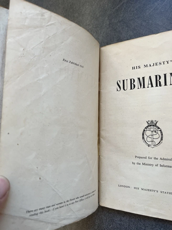 This is an Original WW2 Royal Navy 1945 Booklet His Majesty's Submarines Recovered WW2. This example is in ever good condition all round with some minor wear. It has been recovered at some point during or after the war. It is dated 1945 and has all its original pages except the front cover. Please see photos for condition.