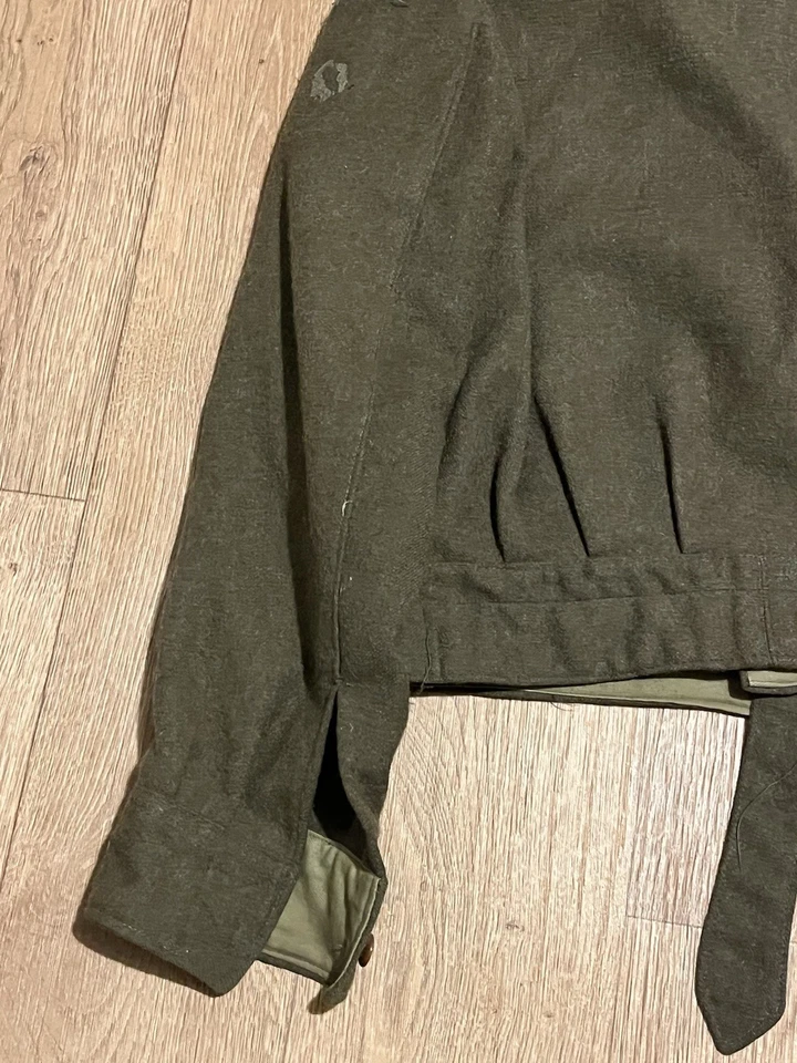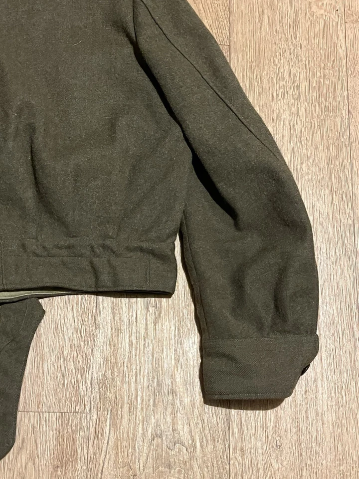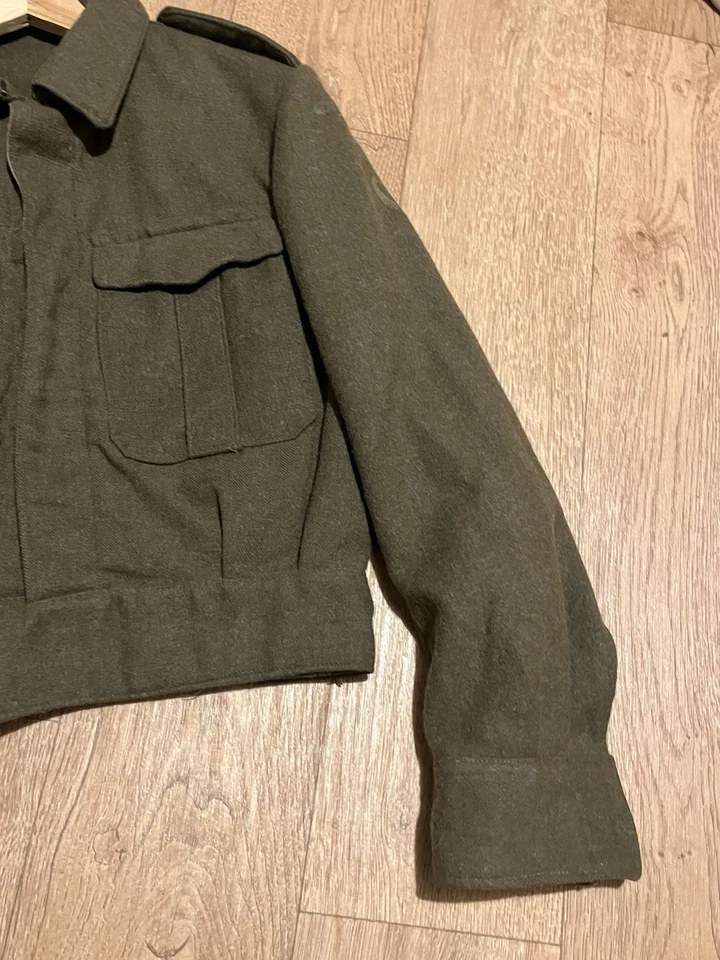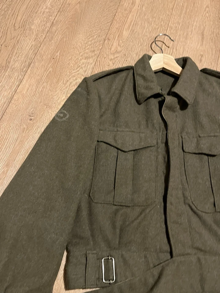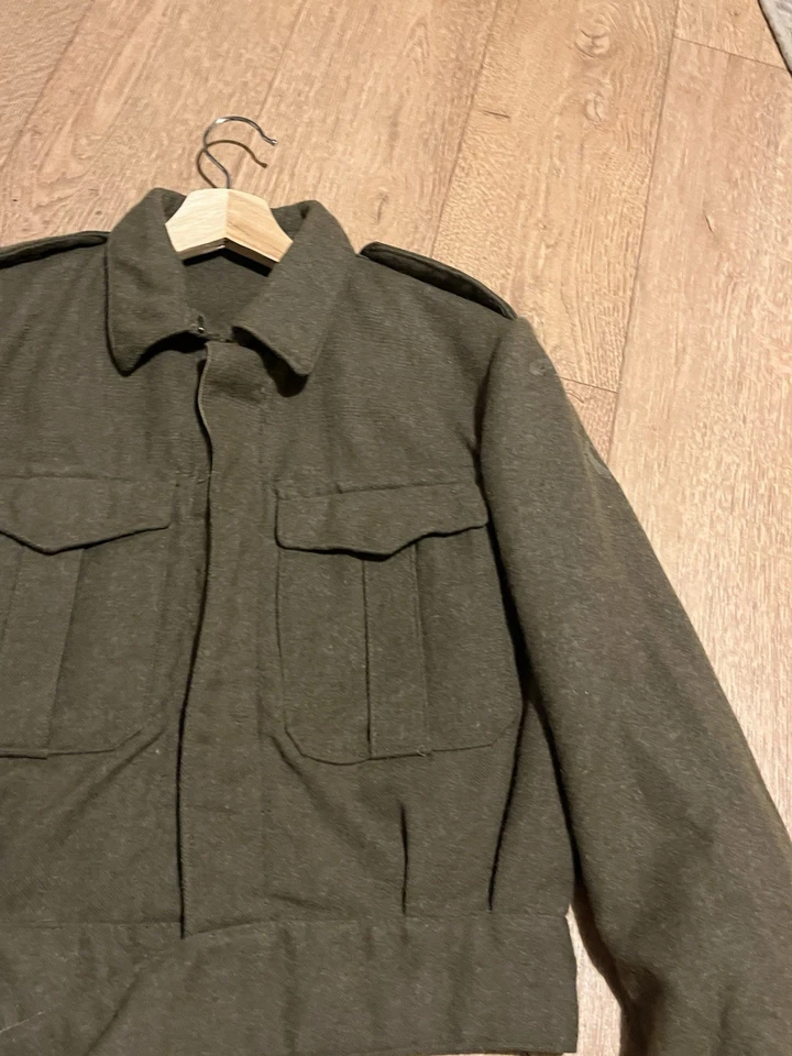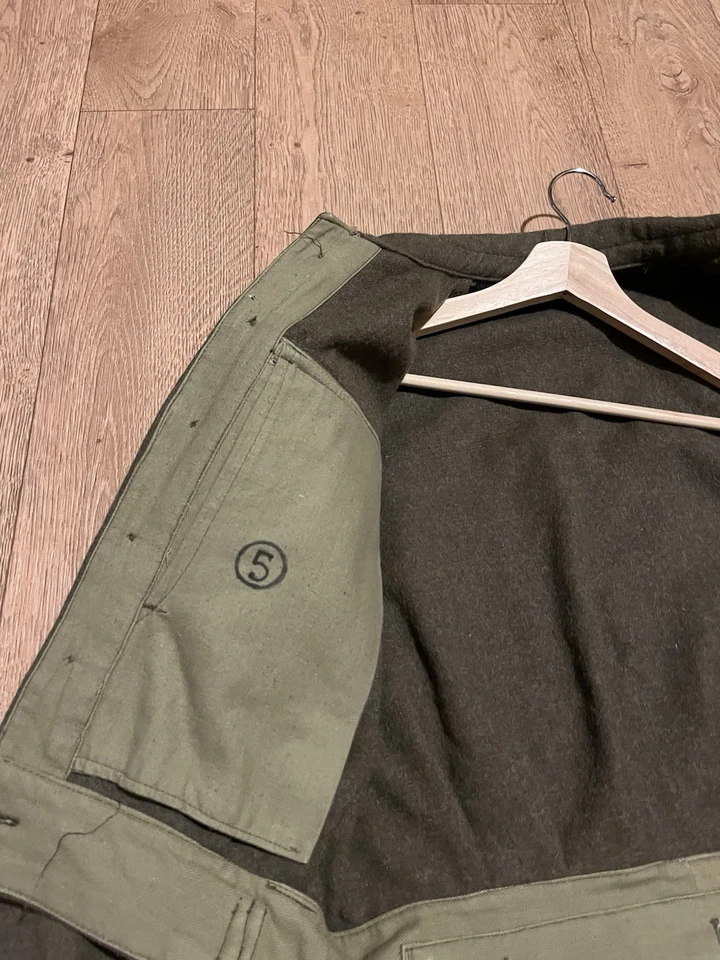 This is an original Post WW2 37 Pattern British Army Battledress Blouse Size 5 42” Chest. This example is in good condition all round with minor wear. It has had its original patches and badges unstitched at some point which you can see. It is dated 1962 on the inside with the label saying size 5 which fits up to a size Medium or 42” chest. This is a short cut jacket as all of these types were. There is no damage or staining with no visible moth. It has all its original buttons. Please see photos for condition.