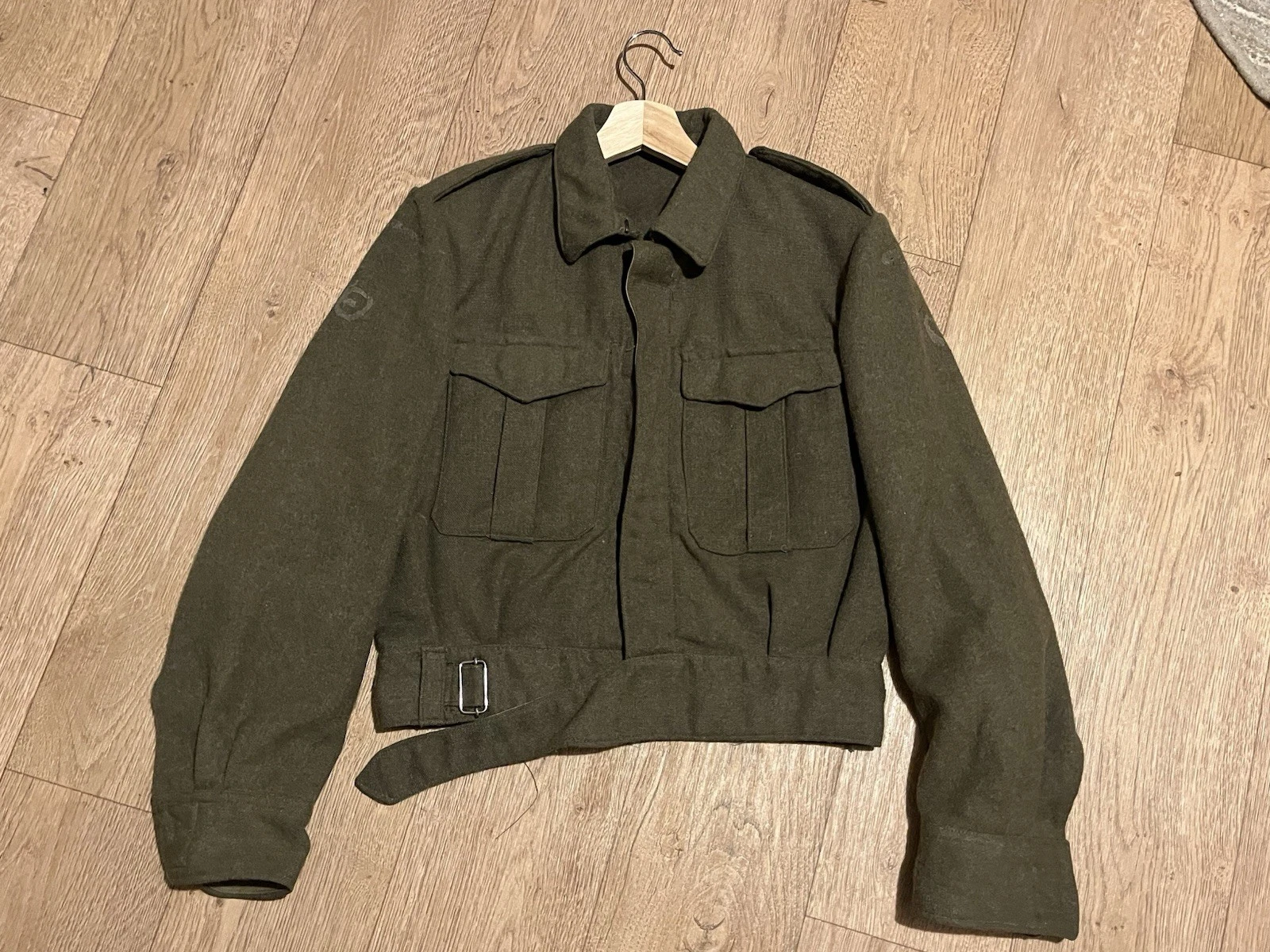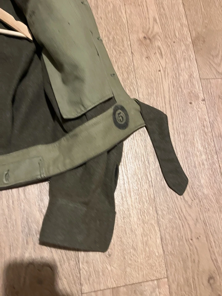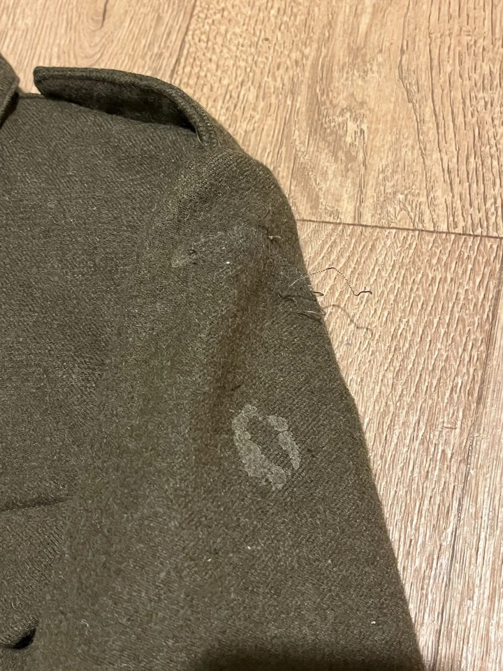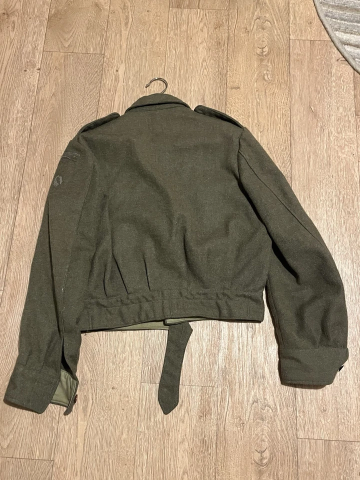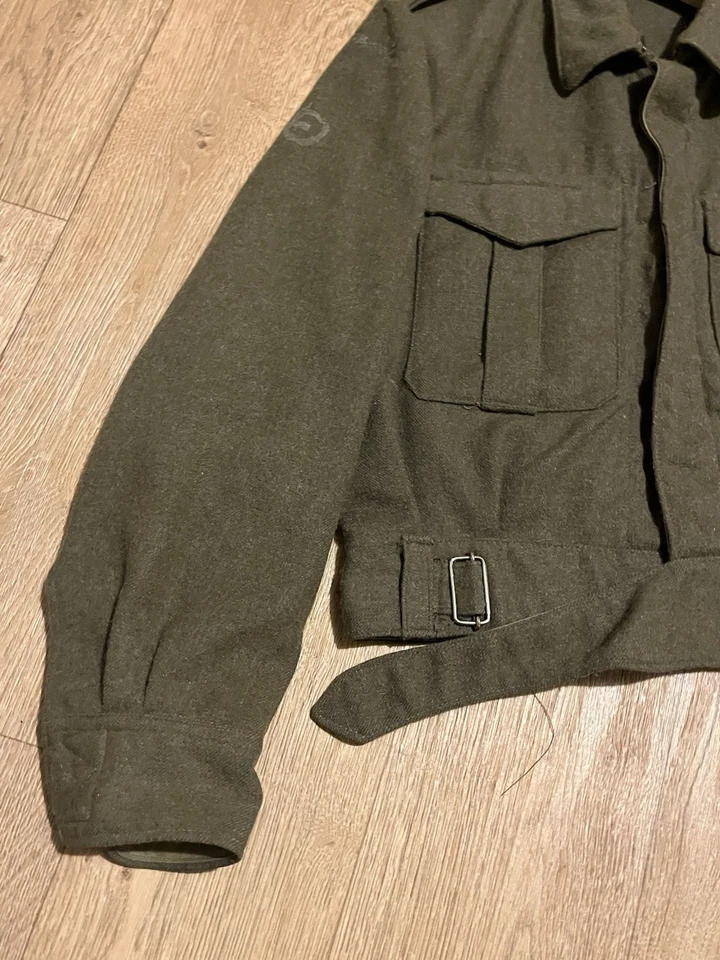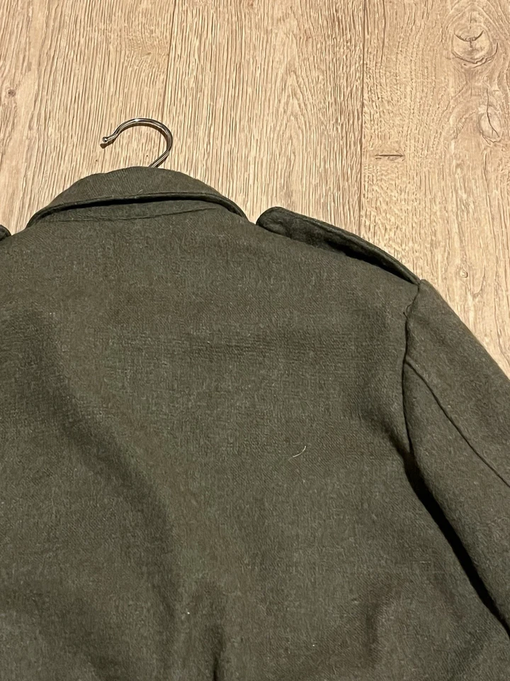 This is an original Post WW2 37 Pattern British Army Battledress Blouse Size 5 42” Chest. This example is in good condition all round with minor wear. It has had its original patches and badges unstitched at some point which you can see. It is dated 1962 on the inside with the label saying size 5 which fits up to a size Medium or 42” chest. This is a short cut jacket as all of these types were. There is no damage or staining with no visible moth. It has all its original buttons. Please see photos for condition.