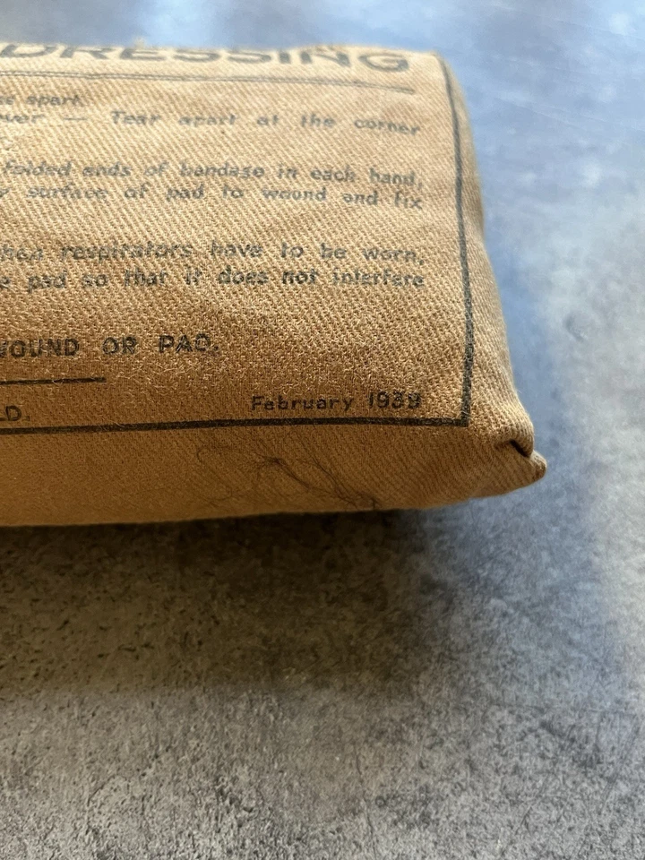 This is a genuine Pre WW2 British Air Raid Precautions issued Shell Dressing dated February 1939. This example is in almost perfect condition with very minor wear. This example is still sealed and in great condition. A nice pre war dated example.
