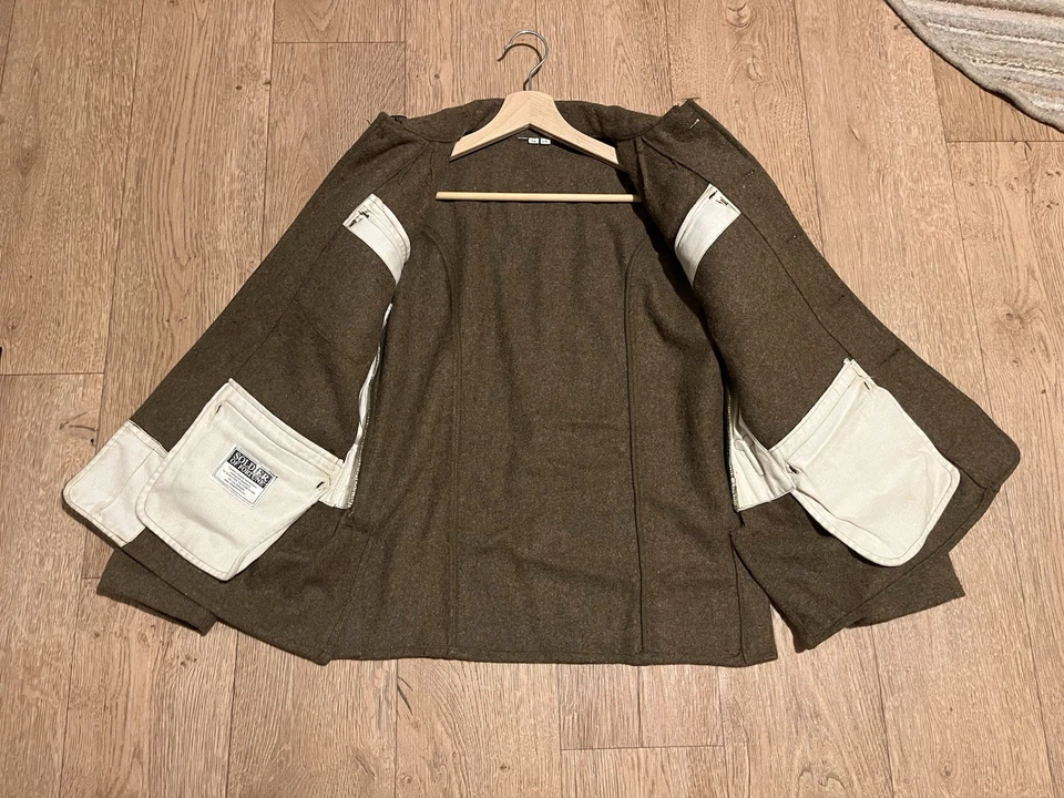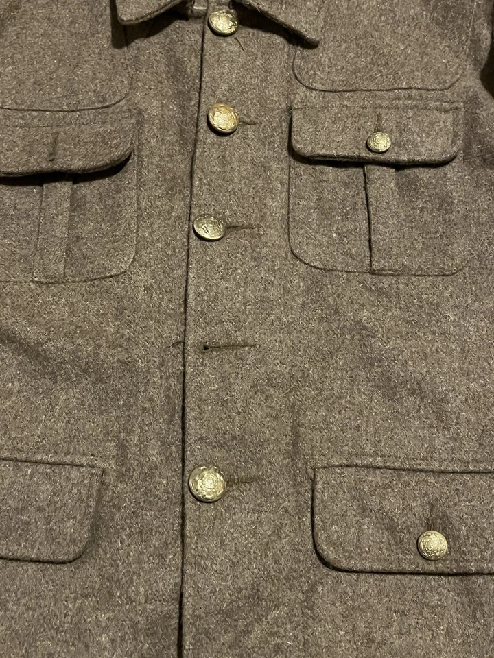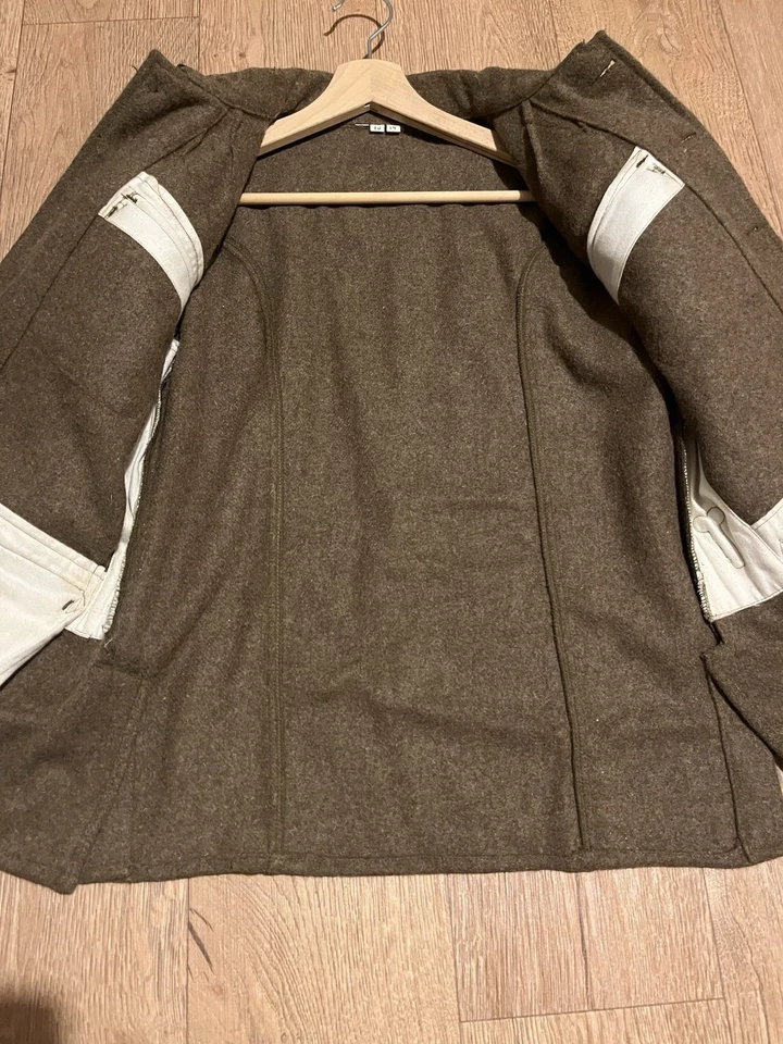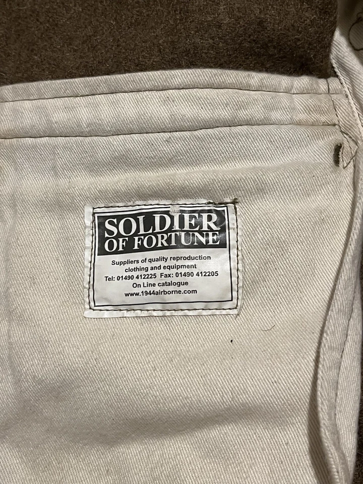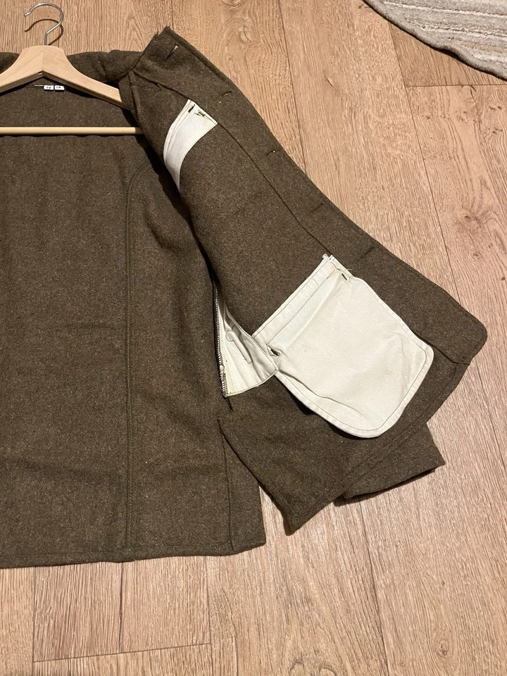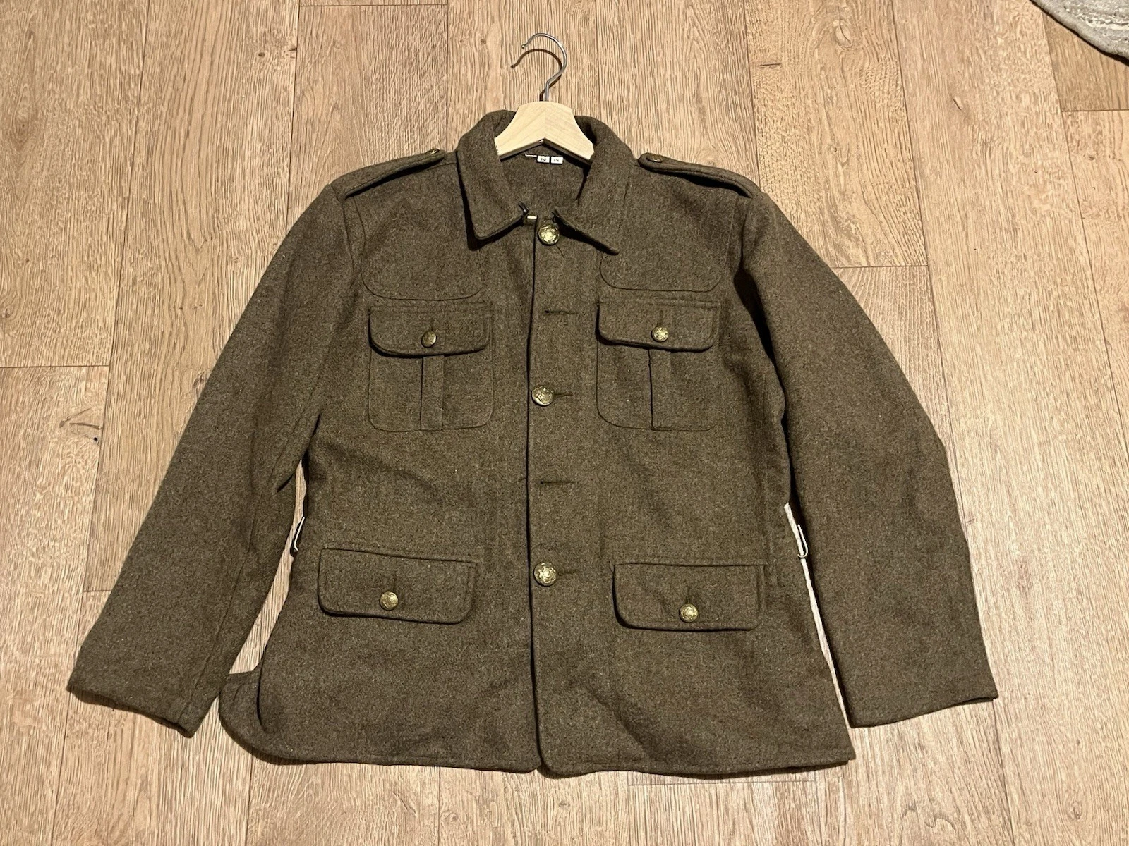 This is a Reproduction WW1 British Army 1902 SD Tunic Made By Kay Kanvas Size 13/14 years old. Childrens British Army WW1 SD Tunic in Kids SizeReplica tunic of the British Military Wool 1902 Service Dress tunic which was used by the British Army in the Great War of 1914 to 1918.The 1902 Pattern Service Dress tunic was the standard uniform clothing used by the British Army throughout the First World War.This example will fit up to a size 34” chest and the back length is 24” long.It is missing one button and another has come off but we still have that one.There are no holes or damage with no moth. Please see photos for condition.
