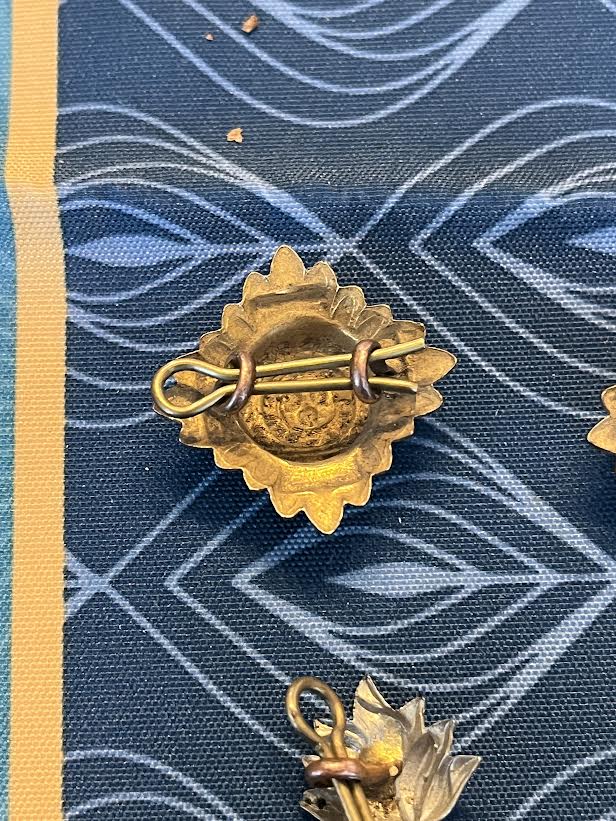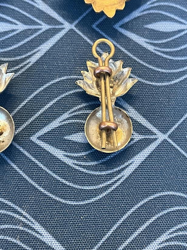 This is an original pair of Royal Artillery Volunteers - Pre-1908 Plain Grenade White Metal Other Ranks' collar badges and 1 set of second lieutenants gold guilt and enamle pips. Both sets of items are in very good condtion all round with all having there rear loops and pins as shown in the photos.