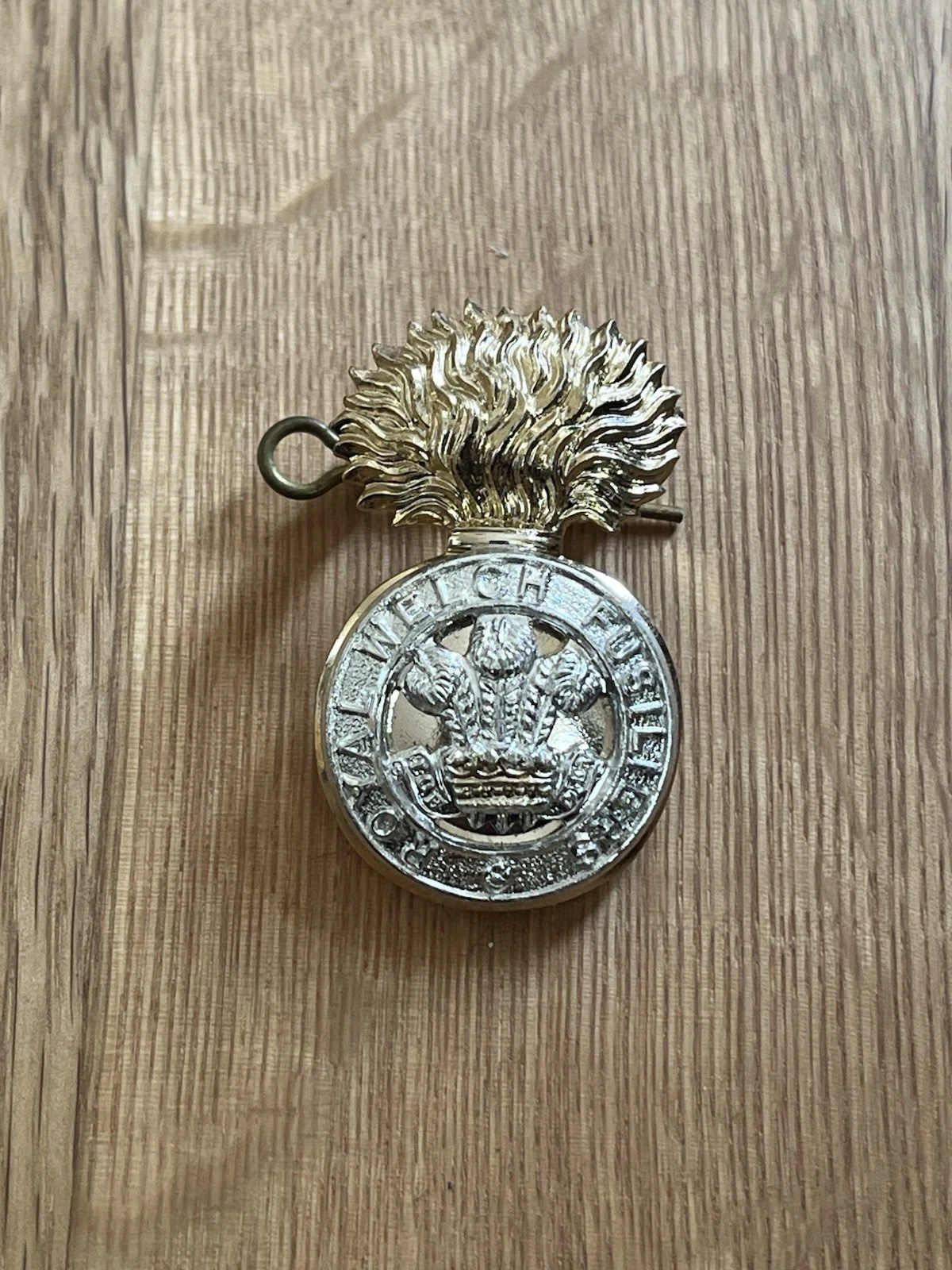This is an original The Royal Welch Fusiliers Anodised Cap Badge Two Tone No Damage with Pin Fitting. This example is in almost new condition with no damage and only very minor wear. It has both its original rear lugs and its original brass pin to attach it to a cap or beret.