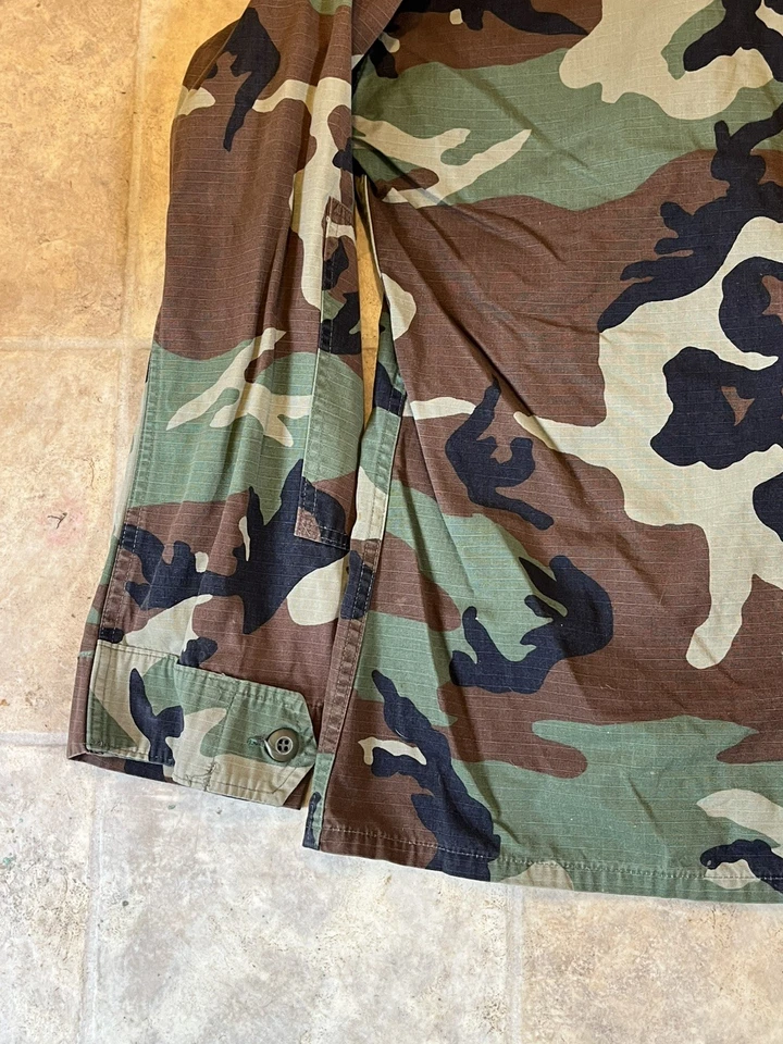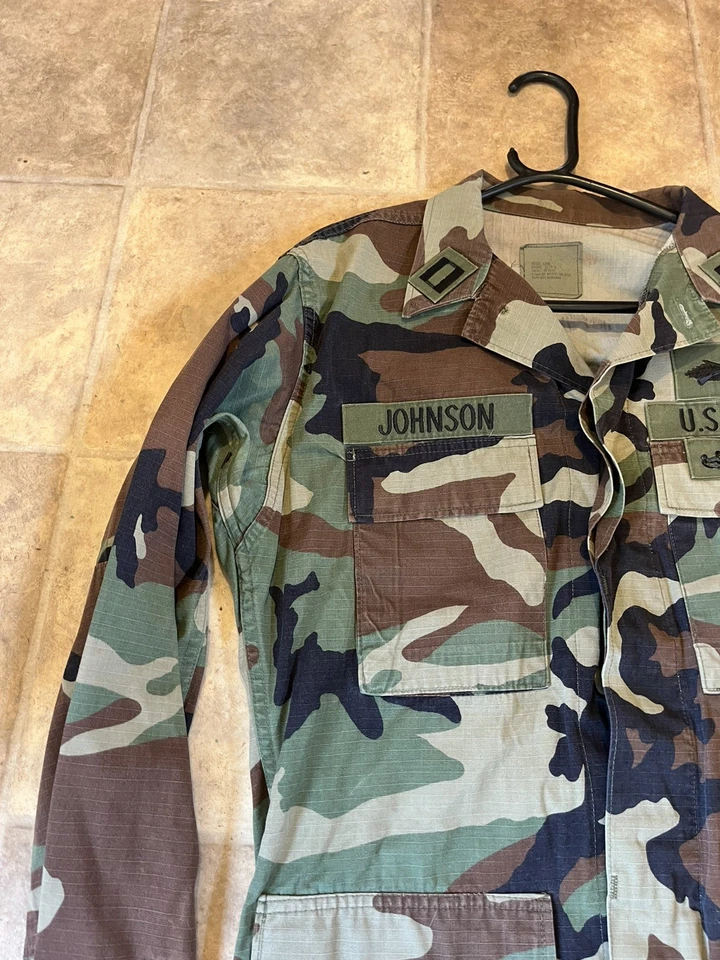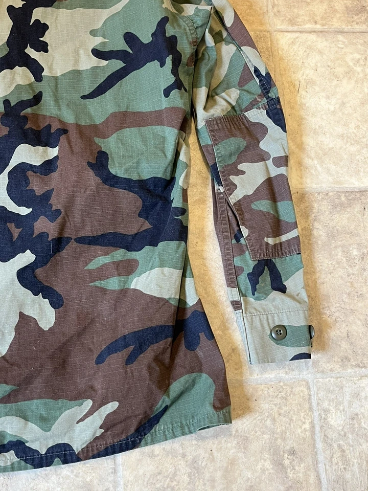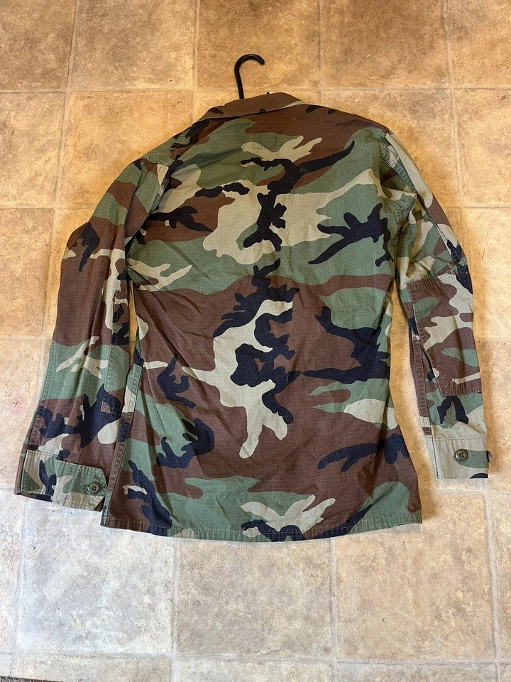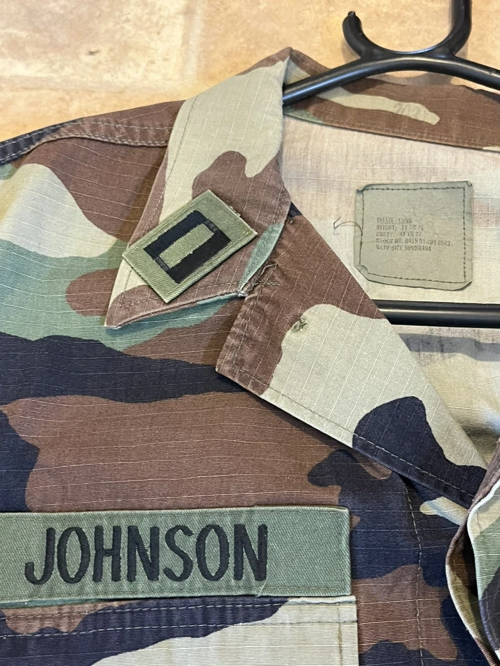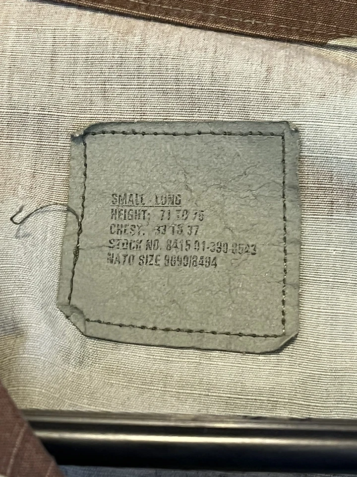 This is a genuine U S Navy Issued Captain Johnson M81 Woodland Camo Jacket Size Small 33-37” chest. This example is in very good condition all round with only minor wear from age. It has all its original patches and labels. It has US Navy written on the chest along with the original owners last name “Johnson”. This example is in a size small Long. All of the pockets are still closed and have looked to have been stitched shut as I believe this may have been a drill jacket and not a field used example. Please see photos for condition