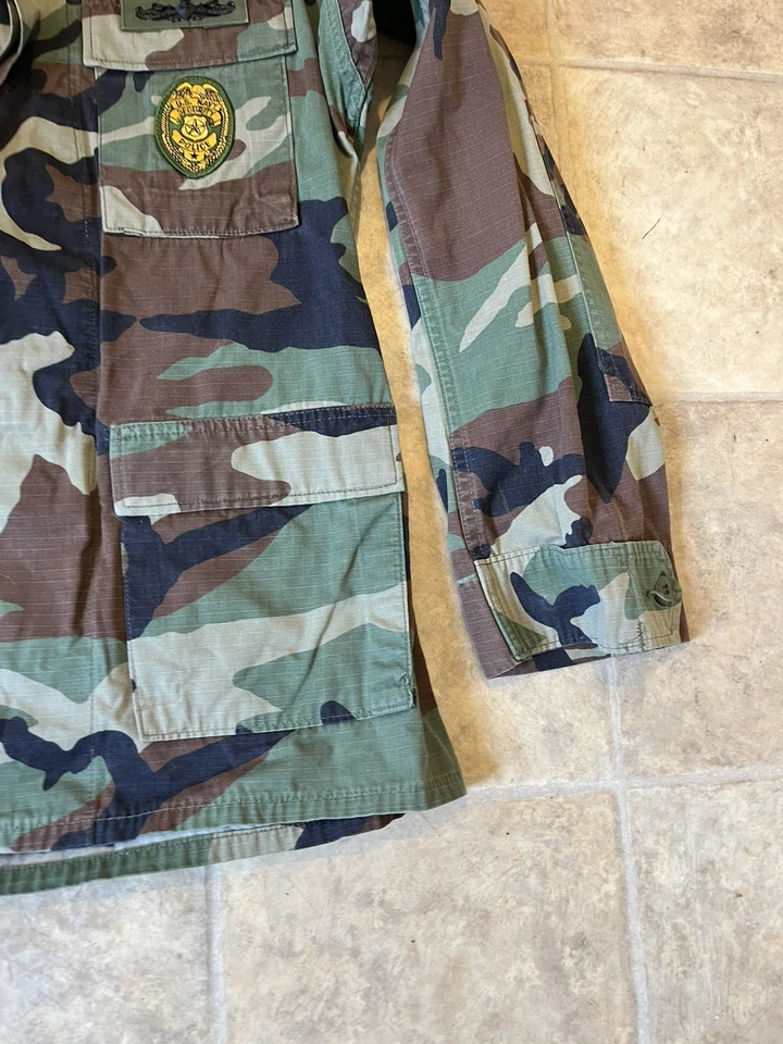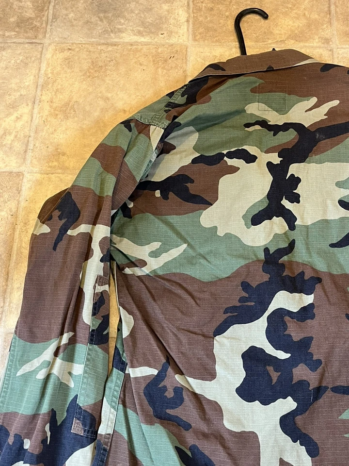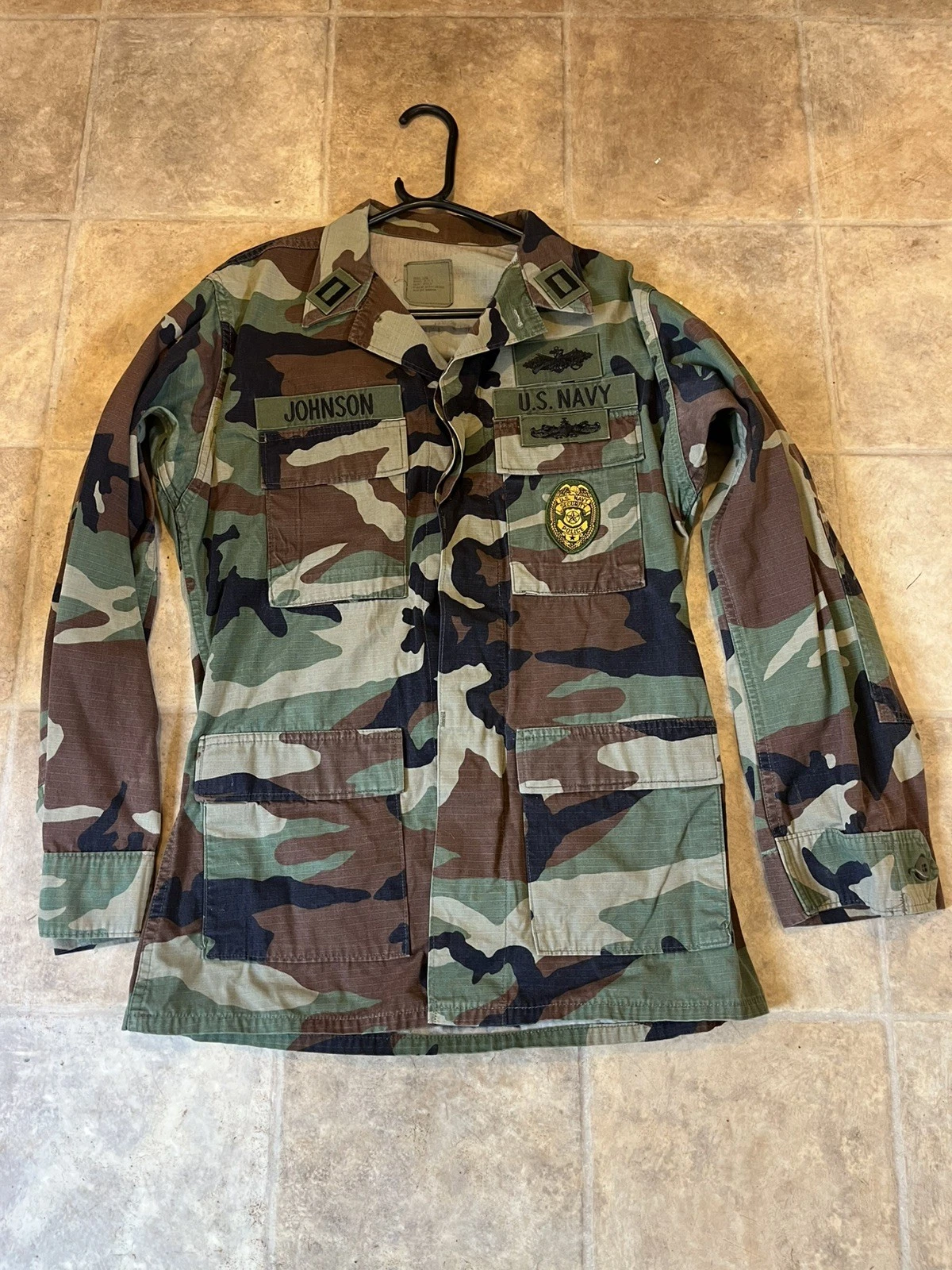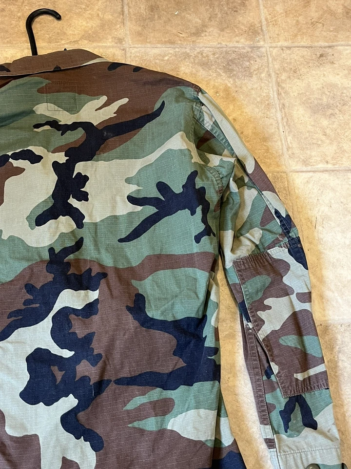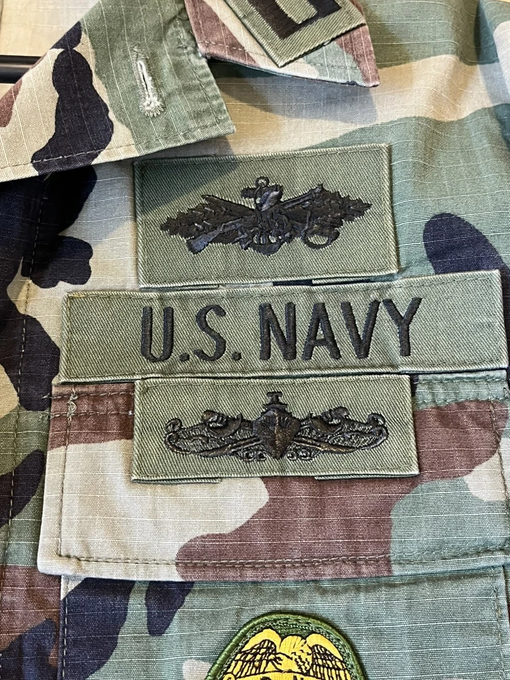 This is a genuine U S Navy Issued Captain Johnson M81 Woodland Camo Jacket Size Small 33-37” chest. This example is in very good condition all round with only minor wear from age. It has all its original patches and labels. It has US Navy written on the chest along with the original owners last name “Johnson”. This example is in a size small Long. All of the pockets are still closed and have looked to have been stitched shut as I believe this may have been a drill jacket and not a field used example. Please see photos for condition