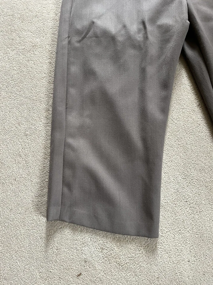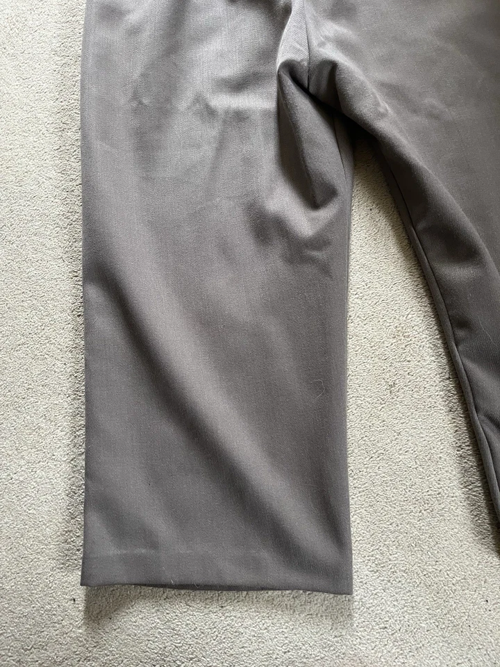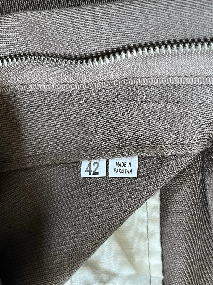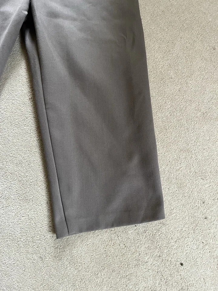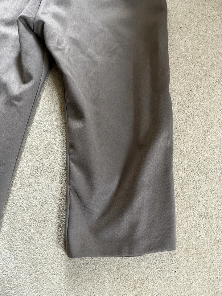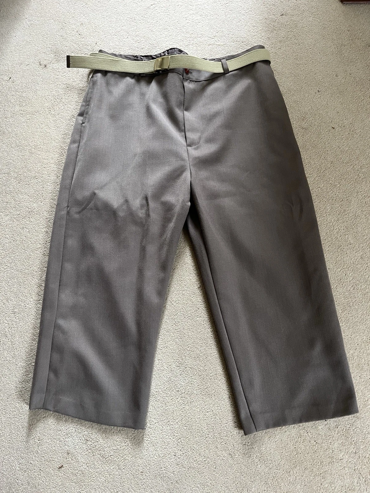 This is a good condition reproduction set of Second World War American officer trousers. They are in a size 42” waist XL. These come with a reproduction brass officers belt as well. Please read the full description of these trousers below.American WW2 replica Officers dress trousers often called "Pinks".Officially called "Trousers, Wool, Elastique, Drab, Officer's" but most often just called Pinks.These where worn by all US Army officers including the Air force officers, Infantry officers, Armoured officers, medical officers, M.P. officers and Airborne Officer's in the 1940's as part of the officers dress uniform. The insignia would be different depending on the branch of service they are in.These would have been worn around the camp, in Headquarters and when on R&R leave.These are high quality replica trousers made in the correct 1940s high waist style. These are designed to be worn high just below your belly button. The sizes given are the actual size of the waist band (were the trouser belt loops are). These give a great original look to your WW2 period impression.These are made in the 1940s style with a high waist band and loose fit. The inside leg is 32 1/2".The US Army Officer pinks trousers could be worn in various combinations of uniform and could be mixed and matched to give various looks. The commanding officer of the day choose which combination of shirt and trousers was to be worn, but one of the most popular ways of wearing the uniform was with the 4 pocket OD#51 officers tunic, brown leather 3 lace shoes, trouser belt, officers OD 51 shirt, tan tie and either overseas Officer garrison cap or the peaked Officers Service cap.A lot of officers purchased their uniforms privately from a gentleman’s tailor so you see some nice tailor shop labels in some original officers dress uniforms.The Officer "Pinks" trousers can be worn with the OD 51 (chocolate) shirt or the pinks shirt with either the OD 51 tie, pinks tie or even the standard tan tie.Features:Vintage 1940's cut and style.High waist.Cavalry drill style fabric.Wool mix fabric (85% wool).Zip fly.Belt loops.Two front slash pockets.Small front fob pocket.Two rear pockets with button down flaps.Fabric is 85% Wool and 15% Polyester.32 1/2" (82cm) inside leg.Period looking Kay Canvas label.