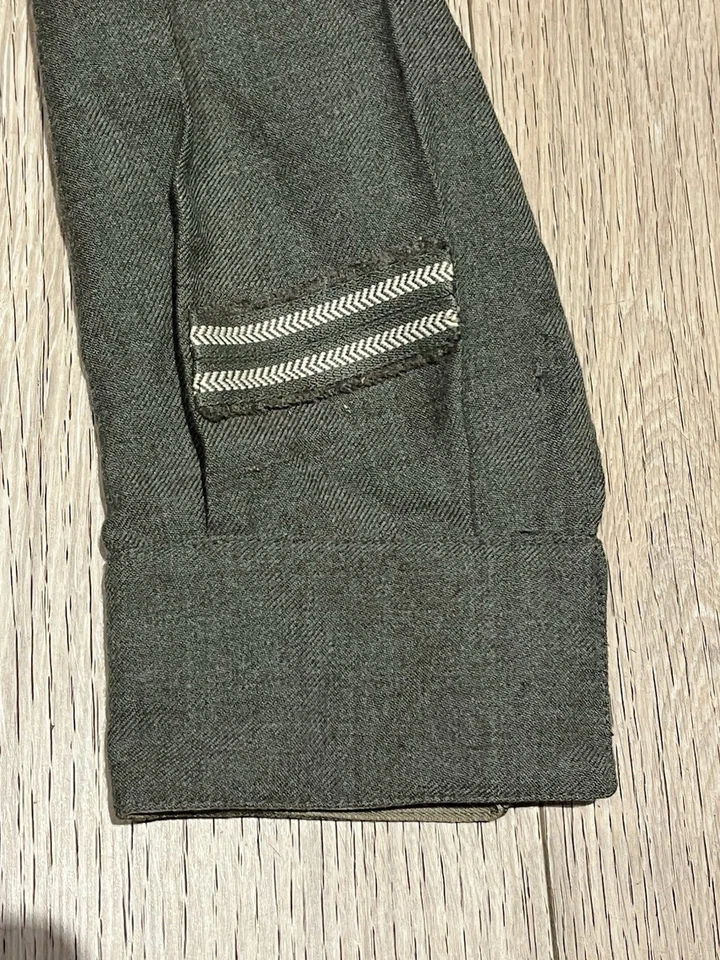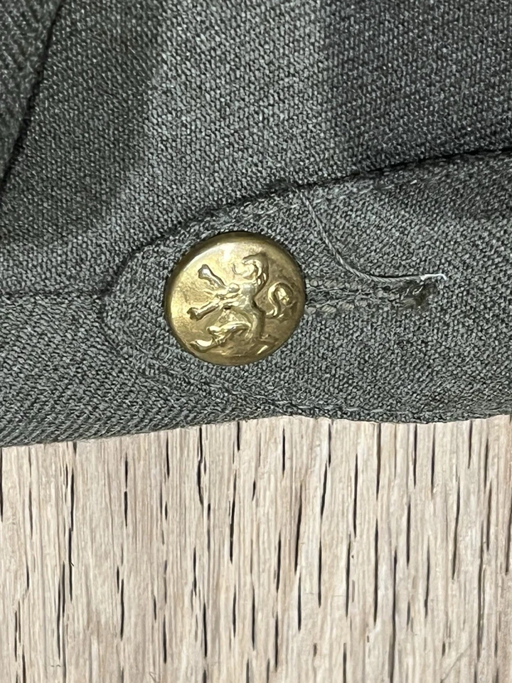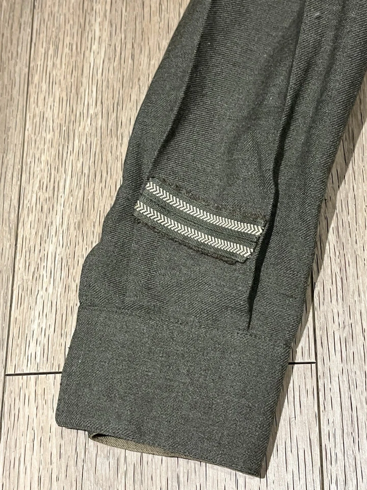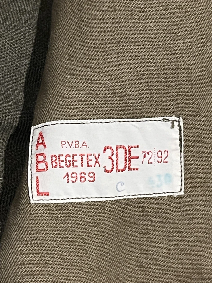 This is a stunning Vintage Belgium Army Enlisted Man’s Lance Corporals Jacket 1969 Dated. This example is in very good condition all round with little to no wear with no moth holes or damage. It has all the correct brass buttons and rank sewn on. It has the makers label still inside with the date of 1969 and size 72/92. This equates to a size small or 172cm height and a 92cm waist. This example has all the correct badges and pieces and is in a very similar style to the Second World War British army 37 pattern jackets.