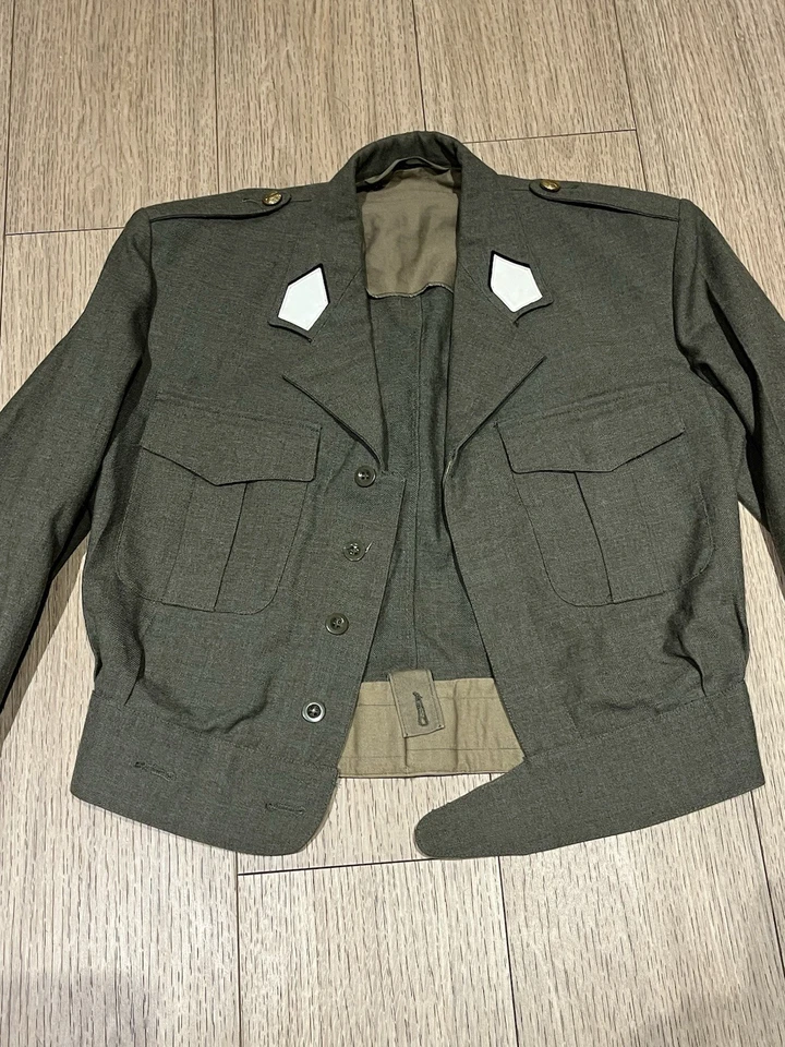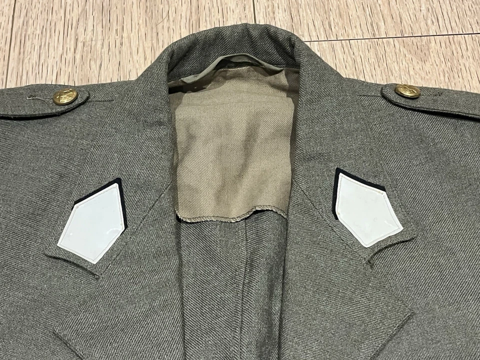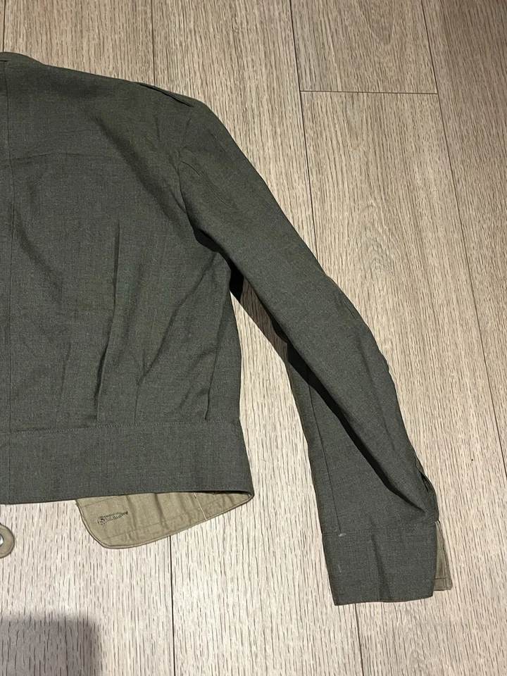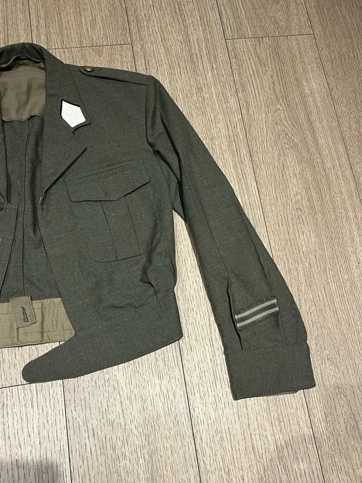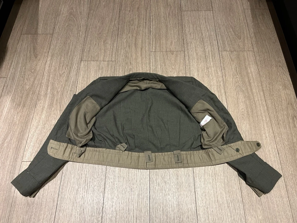 This is a stunning Vintage Belgium Army Enlisted Man’s Lance Corporals Jacket 1969 Dated. This example is in very good condition all round with little to no wear with no moth holes or damage. It has all the correct brass buttons and rank sewn on. It has the makers label still inside with the date of 1969 and size 72/92. This equates to a size small or 172cm height and a 92cm waist. This example has all the correct badges and pieces and is in a very similar style to the Second World War British army 37 pattern jackets.