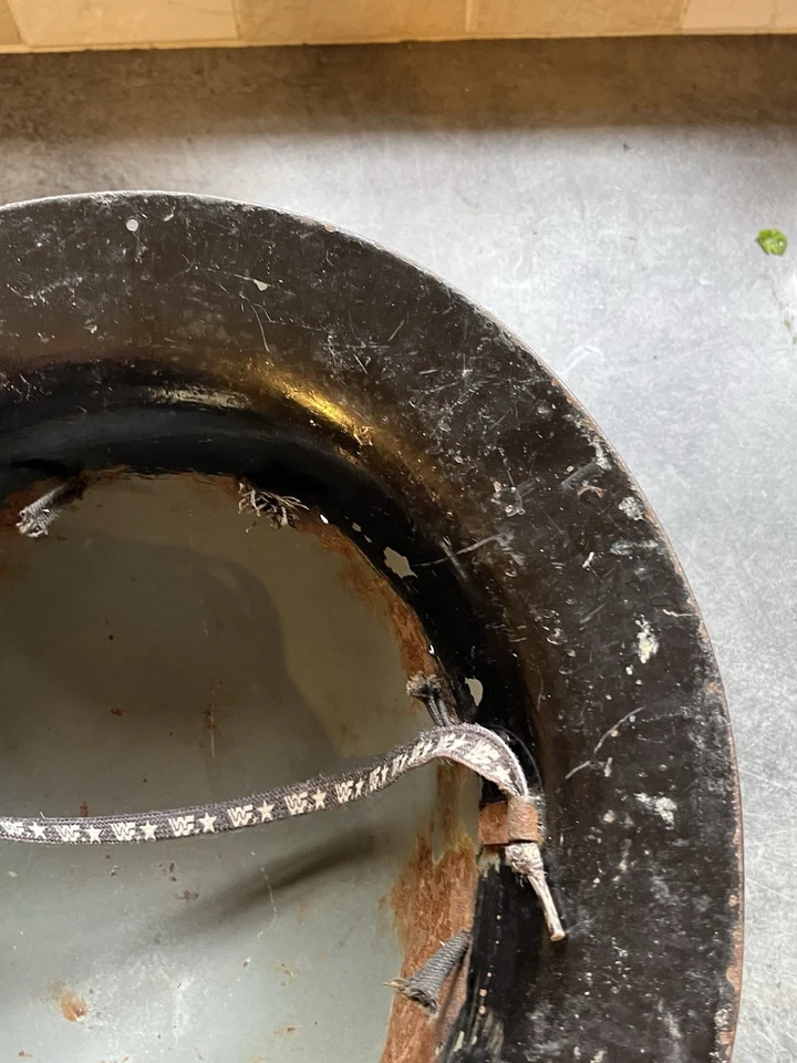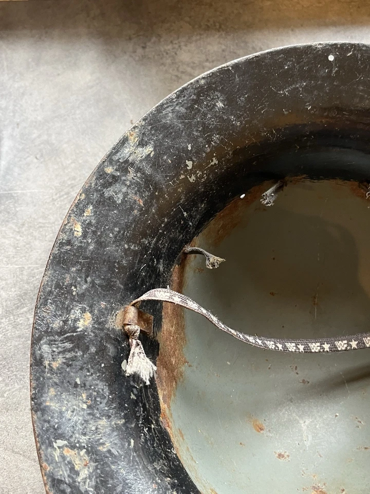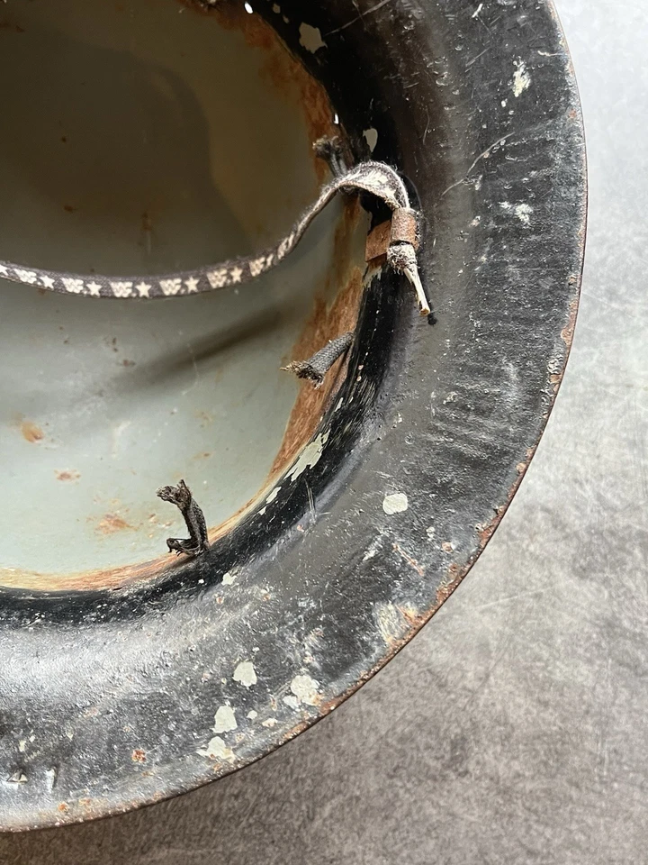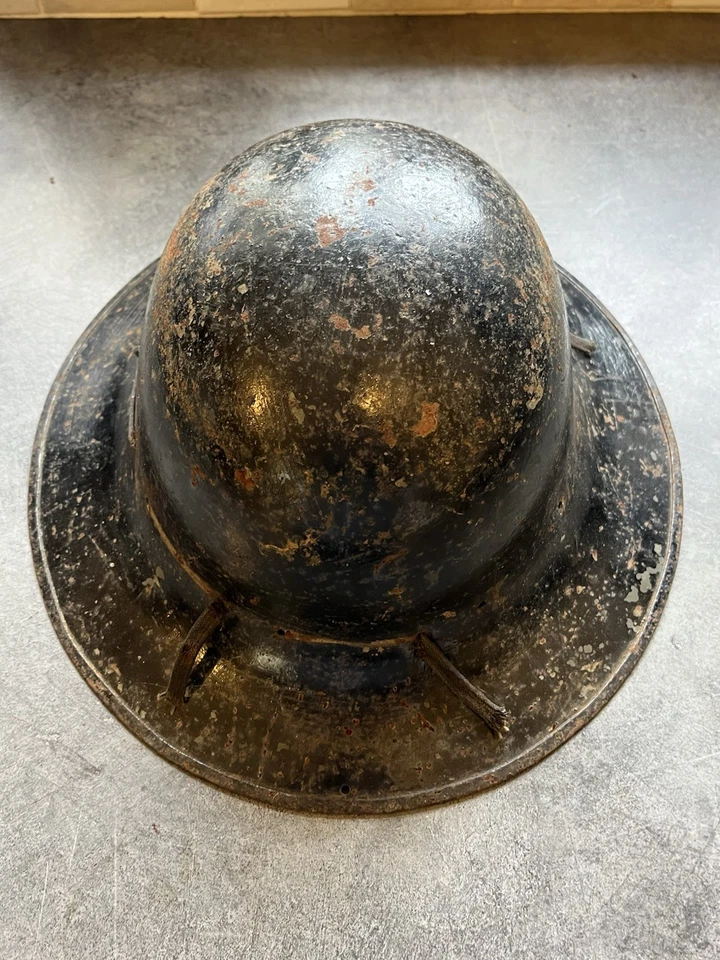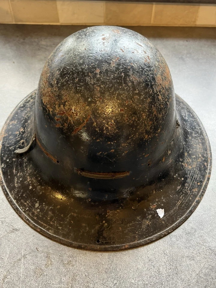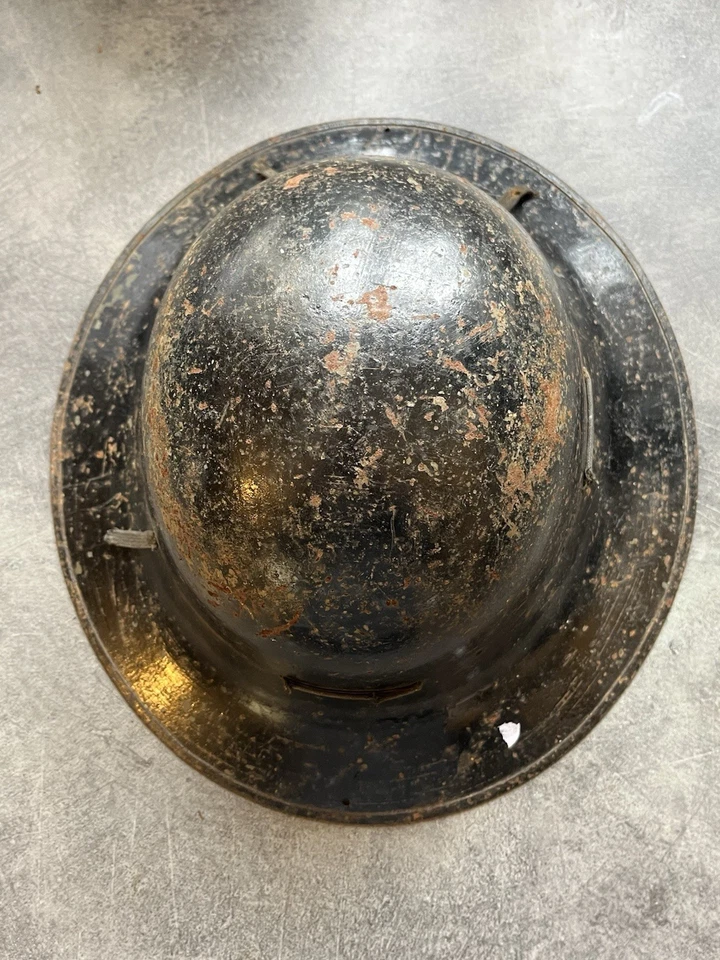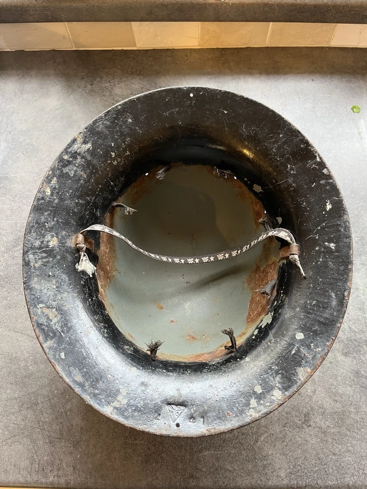 This is an original WW2 1941 Dated British Civilian Issued Zuckerman Steel Helmet. This example is in good condition with no major dents or damage. It has no liner in it and has been painted black at some point which we believe was done to get rid of the shine which the original paint can do. It is stamped up and dated April 1941. It has what’s left of the liner and a chin strap which someone has made.