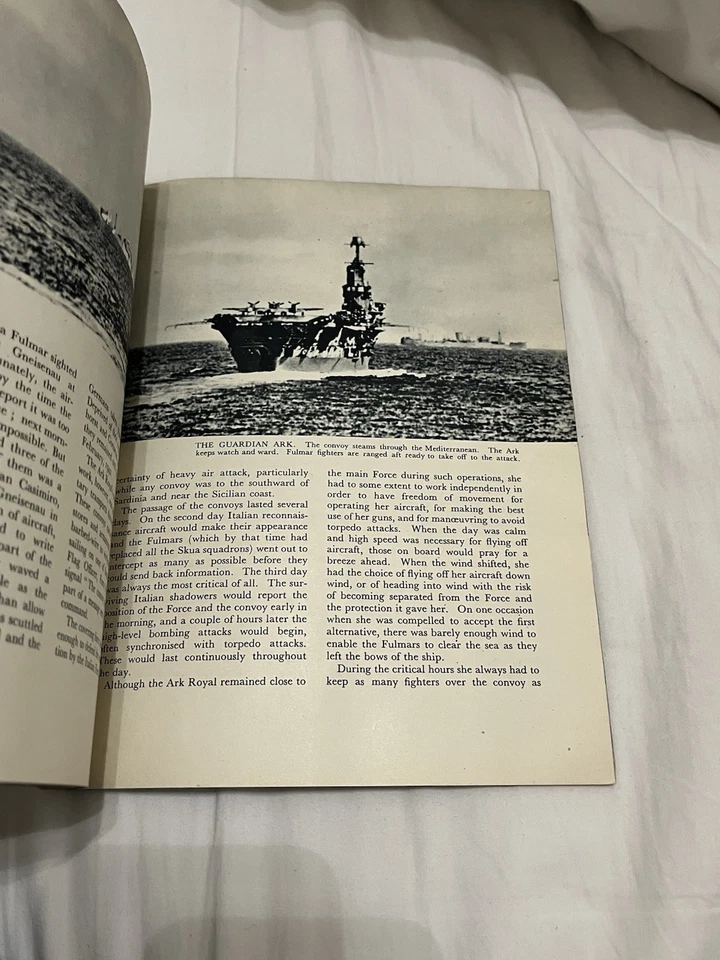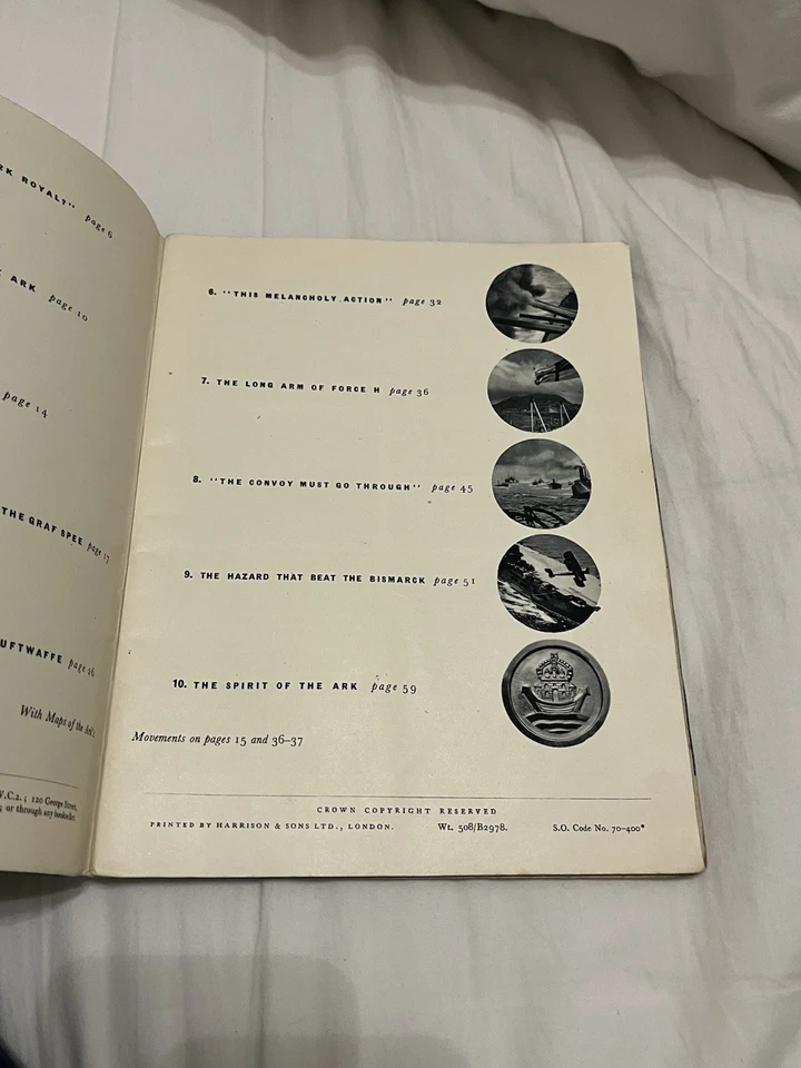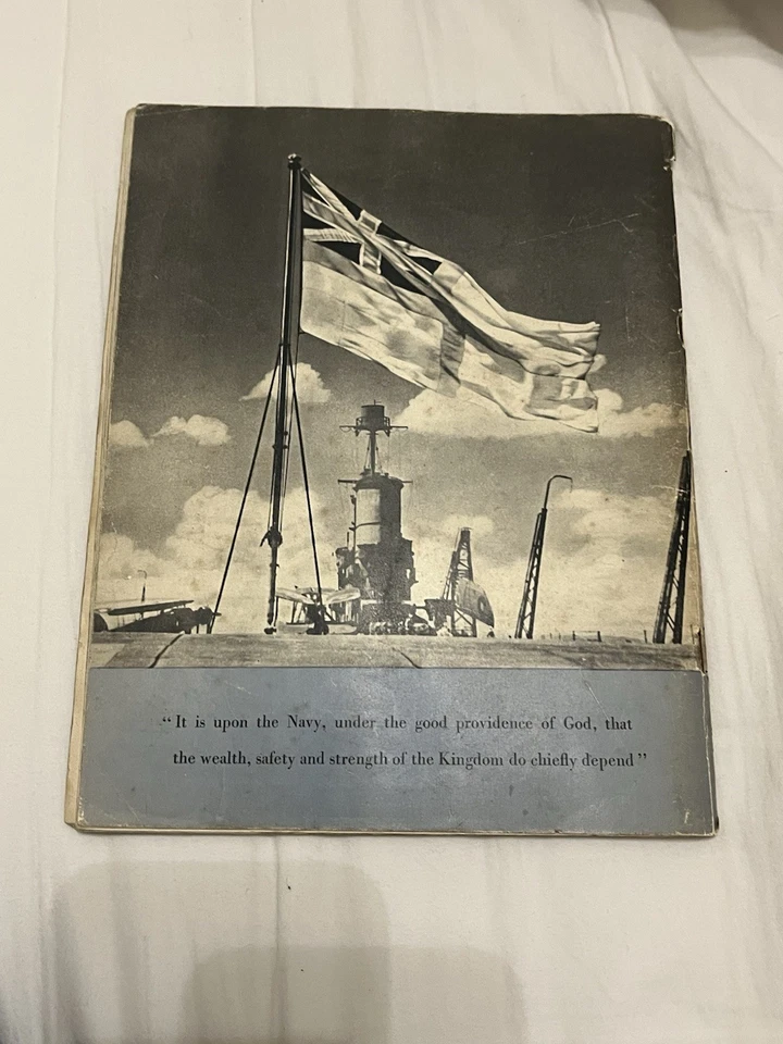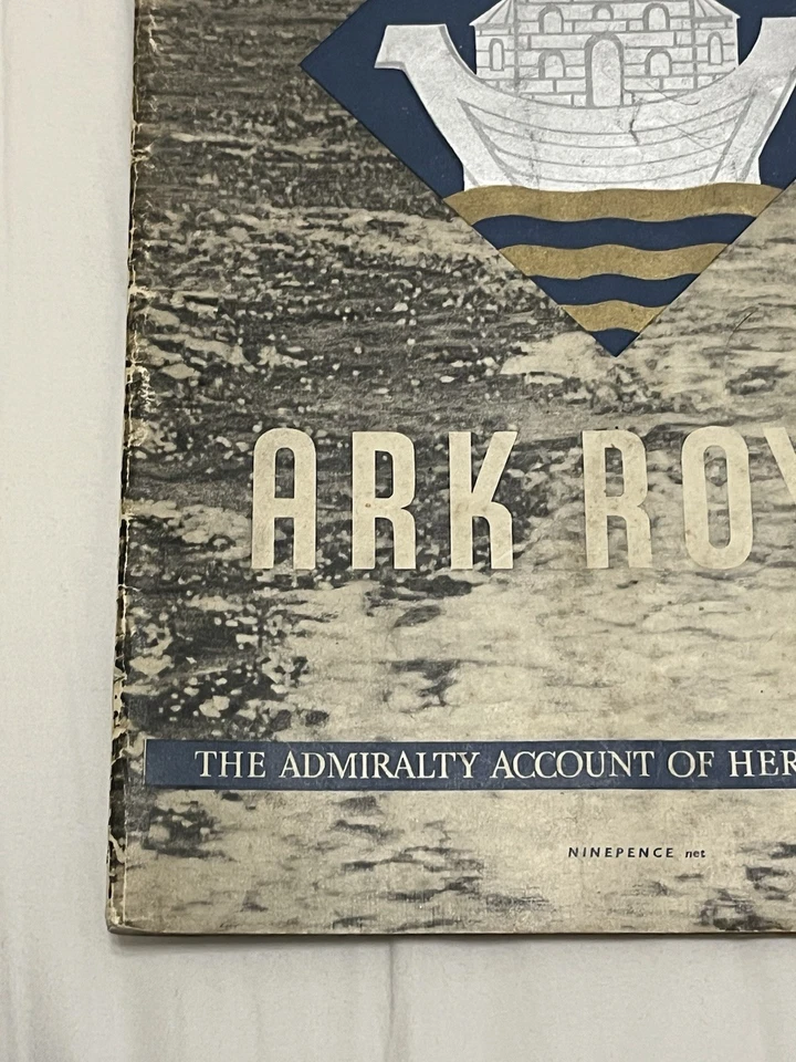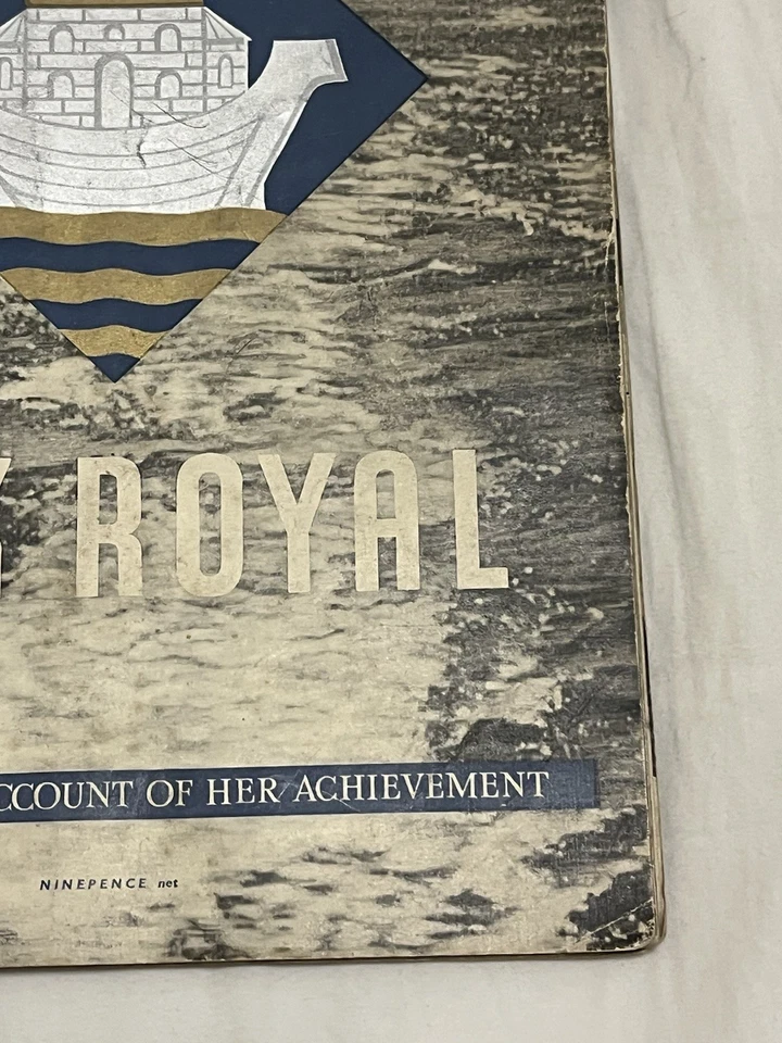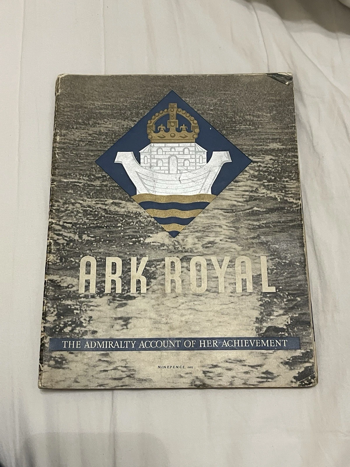This is a WW2 Ark Royal The Admiralty Account of Her Achievements 1942 HMSO Good Condition. This example is in very good condition all round with some minor age related wear. This example has its original front and rear cover with some minor rust stains from the staples which hold this together. These were sold to fund the war effort as well as education the public on what was going on.