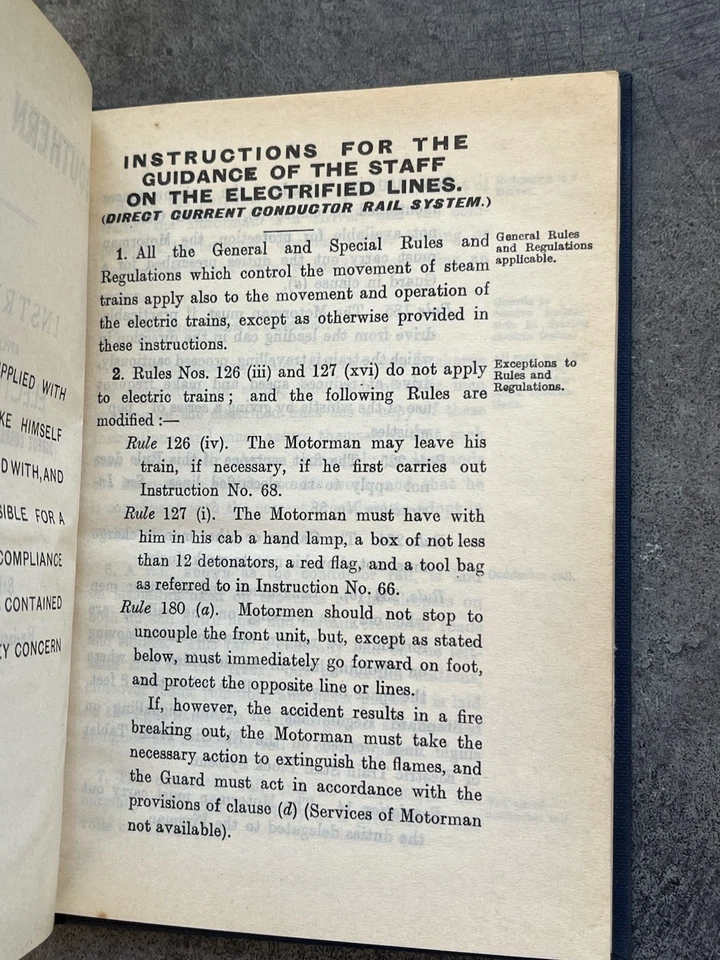 This is an original WW2 Southern Rail Instructions applicable to the electrified lines Railway 1941. This example is in very good condition all round with very limited wear. There are no pages missing and it has had a few items added to it on the inside as shown. A great peice of railway and war time history. Please see photos for condition.